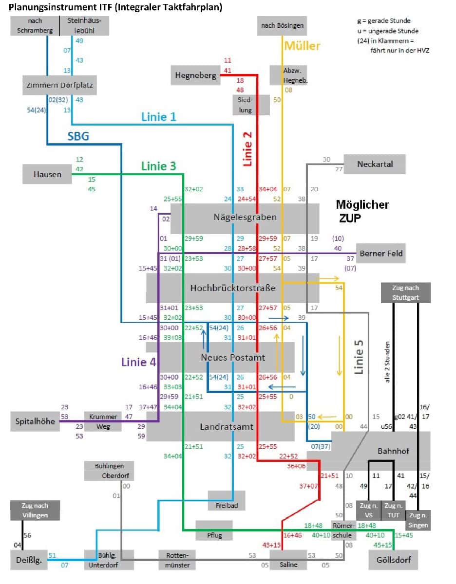 Eine Anpassung ist laut Bisinger ohnehin notwendig: „Da viele Jahre keine Nachjustierung erfolgte, stimmen Takte nicht mehr überein, so dass lange Umstiegswartezeiten bestehen. Eine Abstimmung auf die Bahn An/Abfahrten ist ebenfalls nicht mehr erfolgt.“ Daher: „Wer das ändern will, muss den kompletten Taktfahrplan in die Hand nehmen.“
