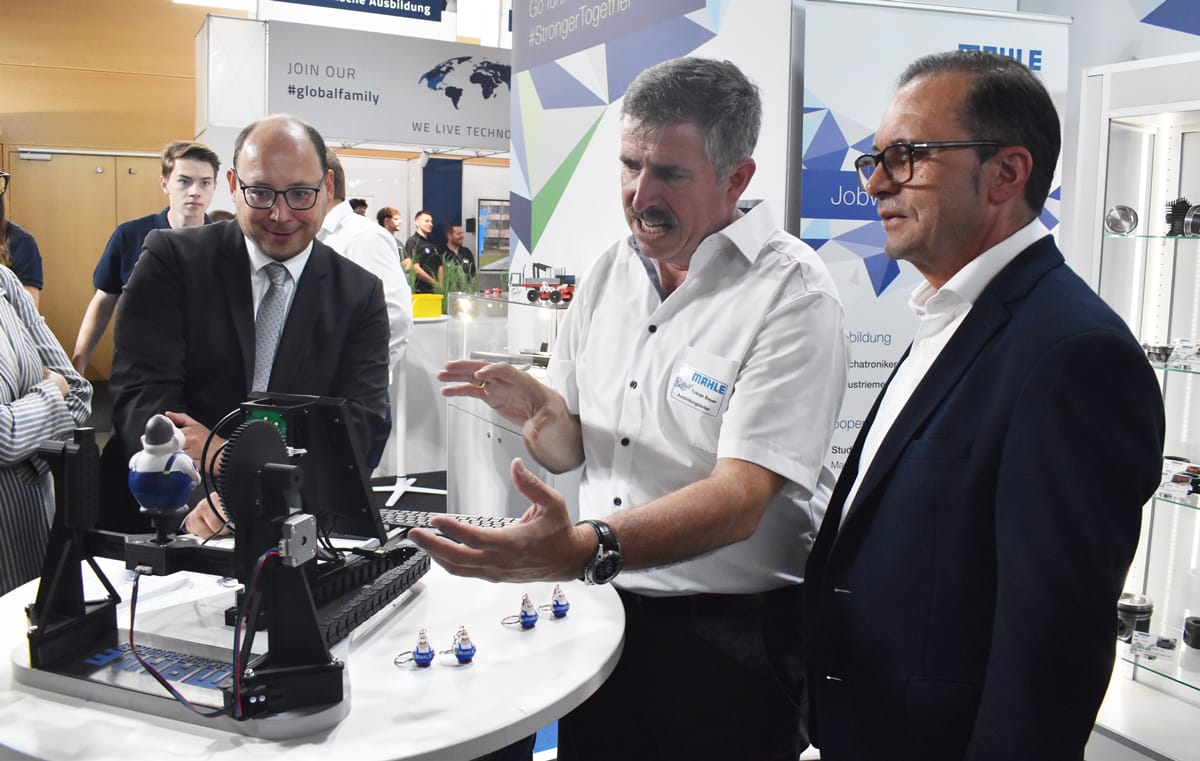 Rottweil – Schon vor dem offiziellen Beginn, vor der Eröffnung durch Oberbürgermeister Dr. Christian Ruf und den IHK-Hauptgeschäftsführer Thomas Albiez, kamen immer wieder Schülerinnen und Schüler in die Stadthalle. Ob sie so begeistert waren wie der OB? Der jedenfalls zeigte sich hoch zufrieden mit dem, was die Aktiven um Bettina Weigl und Alexander Stengelin auf die Beine gestellt hatten. Dies sagte er bei der Eröffnung. Er lobte das breite Portfolio der Aussteller, „das wirklich kaum einen Wunsch offen lässt“. Die Messe sei in den 19 Jahren ihres Bestehens zu einem „wichtigen Aushängeschild für die Wirtschaftsförderung in der Region“ geworden.