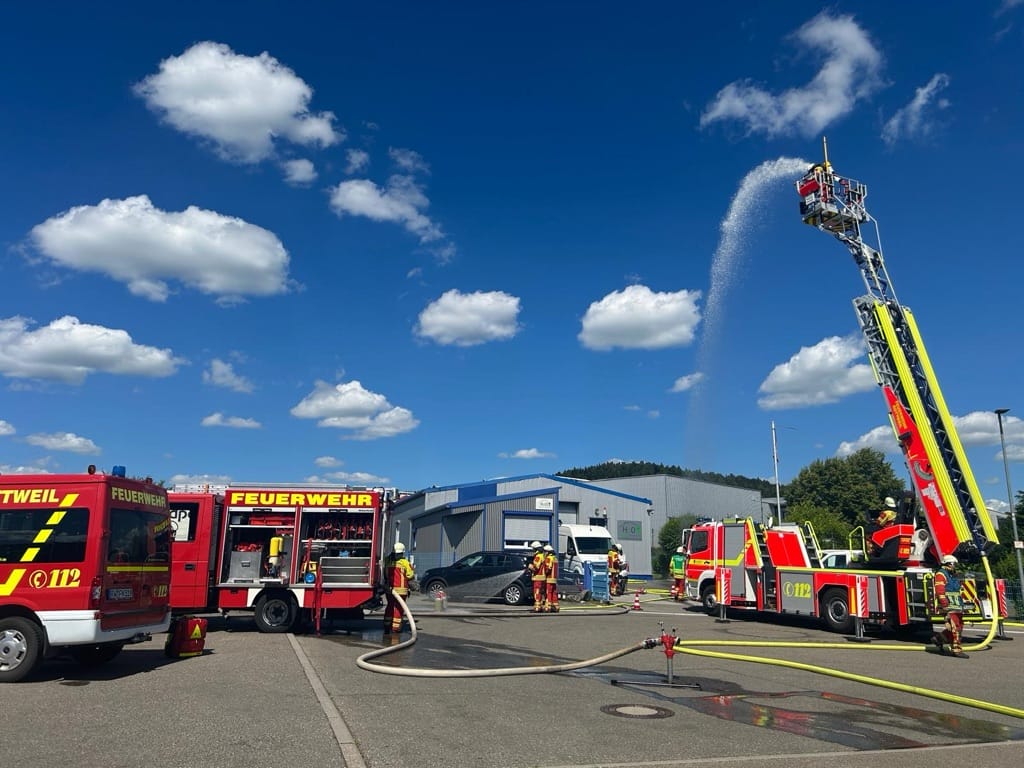 Die Einsatzabteilung Neufra hat am 28. Juni 2025 ihre Hauptübung bei der Firma H2O-Objektbetreuung mit der Annahme eines Industriebrandes abgehalten. Darüber berichtet der Rottweiler Feuerwehrsprecher André Wendel.