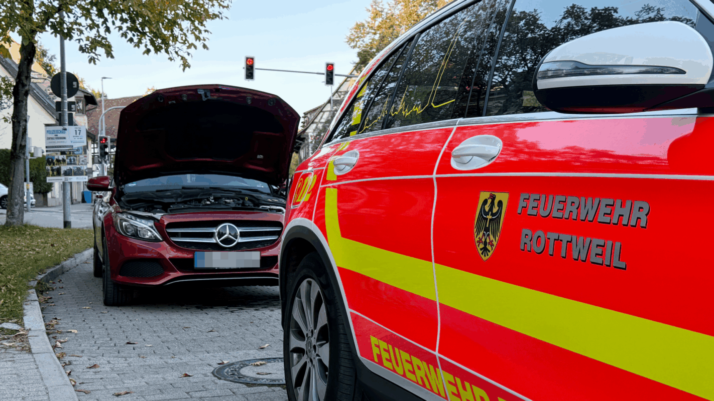 Motorschaden mit größeren Auswirkungen: Eine Mercedes-Limousine hat am Donnerstagnachmittag eine kilometerlange Spur in Rottweil hinterlassen. Glücklicherweise Diesel, der schneller verdampft als Motoröl. Die Feuerwehr war dennoch im Einsatz.
