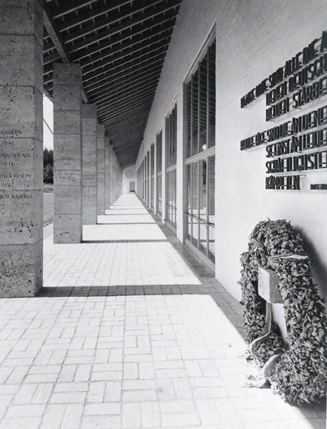 Besonders deutlich wird dies bei der Säulenhalle am Festsaal. Diese war als „Gefallenen-Ehrenhalle“ angelegt – mit entsprechender Inschrift und Halterung für Ehrenkränze. So wurde der auf Krieg ausgerichtete nationalsozialistische Opfer- und Todeskult im Schulalltag verankert. Und noch stärker eingeprägt wurden die Leitideen der Schüler- und Lehrerschaft durch die Benennung des Gymnasiums nach dem frühen Hitler-Verehrer und NS-Propagandisten Dietrich Eckart (1868-1923).