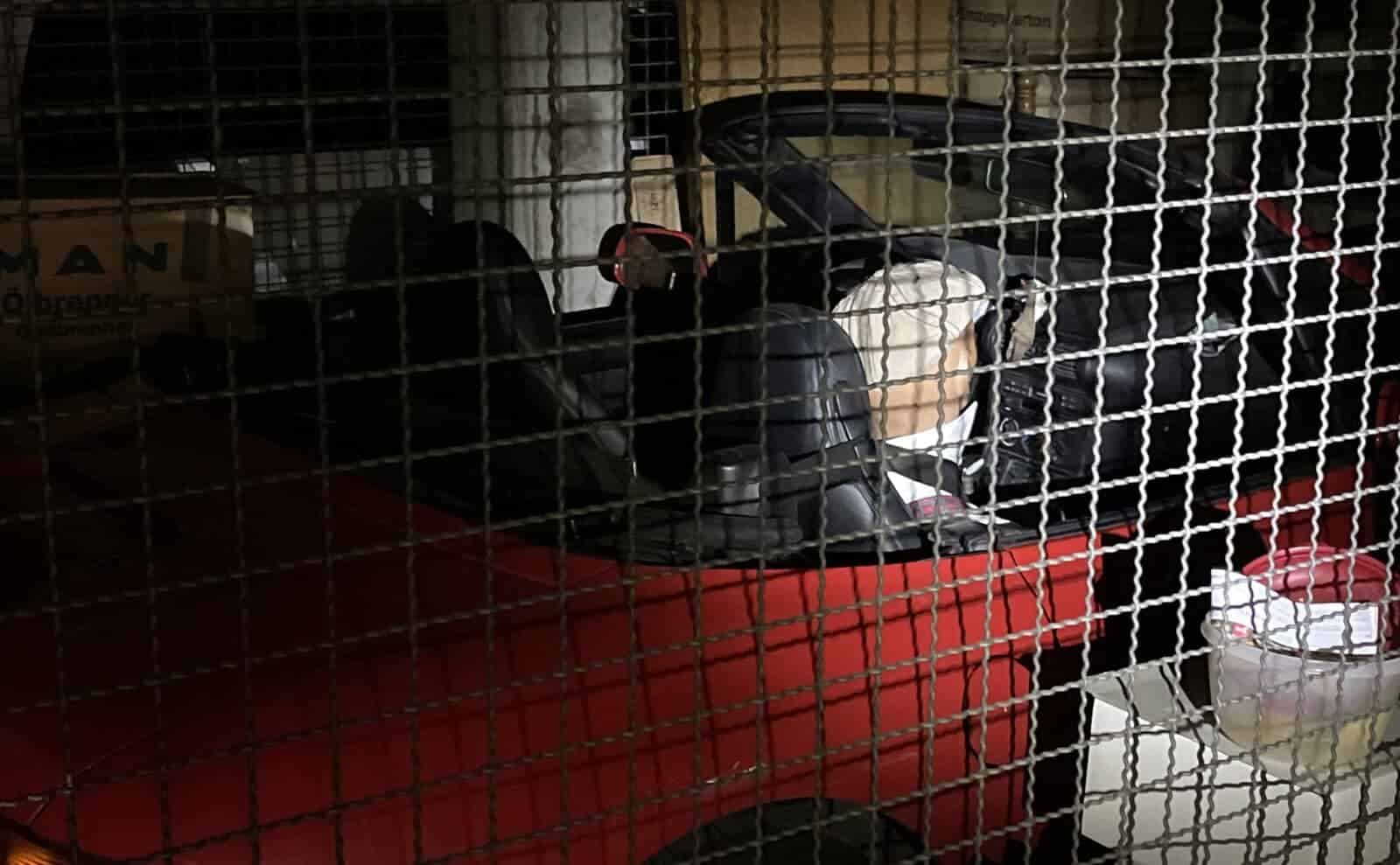 All das war dann doch nicht nötig. Denn die vermeintliche Leiche – die ist eine Schaufensterpuppe. Angeschnallt, angezogen und mit Kappe sitzt diese auf dem Beifahrersitz des roten Cabrios, das da in der Box abgestellt ist. So habe er die „Person“ vorgefunden, berichtete Stadtbrandmeister Frank Müller schmunzelnd. Er habe mit seiner Taschenlampe genügend Licht machen können, um das zu erkennen. Daraufhin habe er seine nachrückenden Kräfte die Anfahrt abbrechen lassen können.