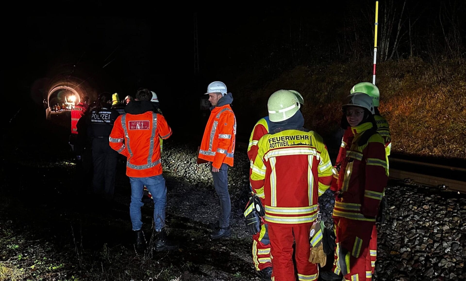 Nach einem Unfall mit Personenschaden ist die Bahnstrecke Stuttgart-Singen am Mittwochabend unterbrochen worden. Rottweiler Rettungskräfte waren in großer Zahl im Einsatz.
