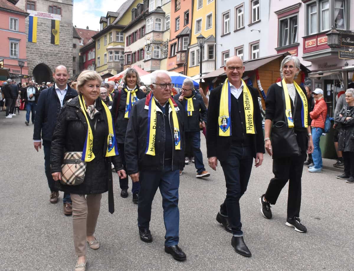 Beim vorigen Stadtfest vor drei Jahren seien 500 Jahre Vertrag mit den Schweizer Kantonen gefeiert worden, sagte Broß. Heuer sei die Zahl deutlich kleiner, es würden 50 Jahre Städtefreundschaft mit Hyères gefeiert. Er erinnerte daran, dass 1970 der Partnerschaftsvertrag in Südfrankreich, 1971 dann in Rottweil unterzeichnet worden sei. Über 25 Personen umfasse allein die Delegation aus Hyères.