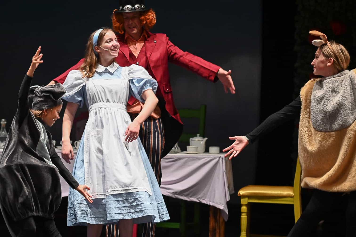 Diese Ebene für Kinder ist voll da und sorgt für dichte Unterhaltung. Hinzu kommt allerdings noch eine weitere: Ein Autor, der sich die Geschichte überlegt. Auf der Bühne passiert, was er sich gerade ausdenkt – ähnlich, wie man es aus Cornelia Funkes Bestseller „Tintenherz“ kennt. Mehr und mehr entwickelt die Hauptfigur Alice freilich ein Eigenleben. Und schreibt irgendwann ihre Geschichte selbst – womit auch Fragen des Erwachsenwerdens und der Wunsch nach einem selbstbestimmten Leben egal in welchem Alter angesprochen werden. Zeitlose Themen also, verpackt in einen szenisch und musikalisch farbenreichen Musicalabend.