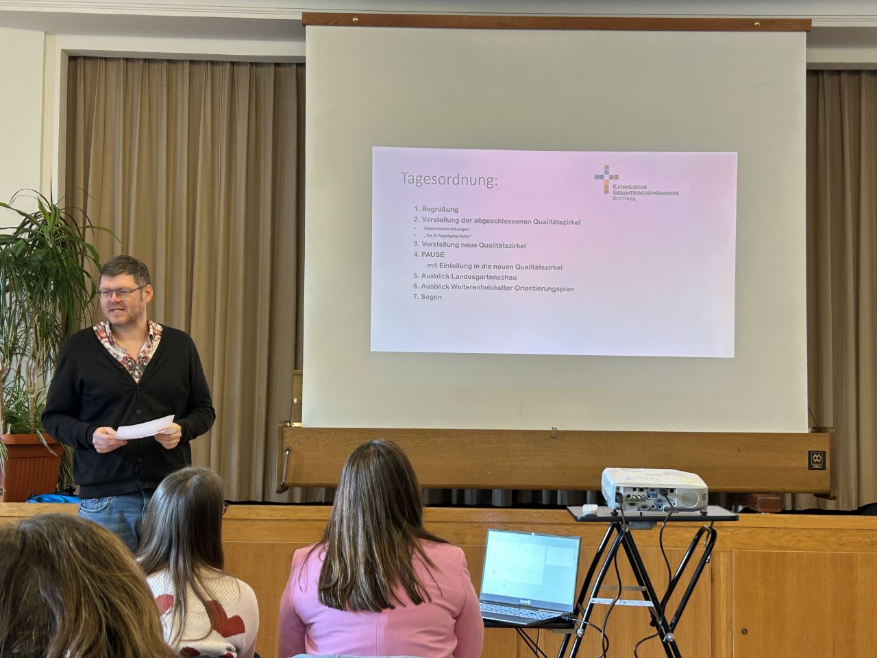 Schon in seiner Begrüßung hob Gesamtkirchenpfleger Andreas Schmötzer die Bedeutung von Qualität als zentralen Wert hervor. Neben der kontinuierlichen Weiterentwicklung von Angeboten betonte er insbesondere die Rolle der „Herzensbildung“ sowie das Engagement jedes einzelnen Mitarbeitenden. Das Qualitätsmanagement (QM) bilde dabei den verbindlichen Standard, wobei gerade kleine Schritte im Alltag eine große Wirkung entfalten könnten.