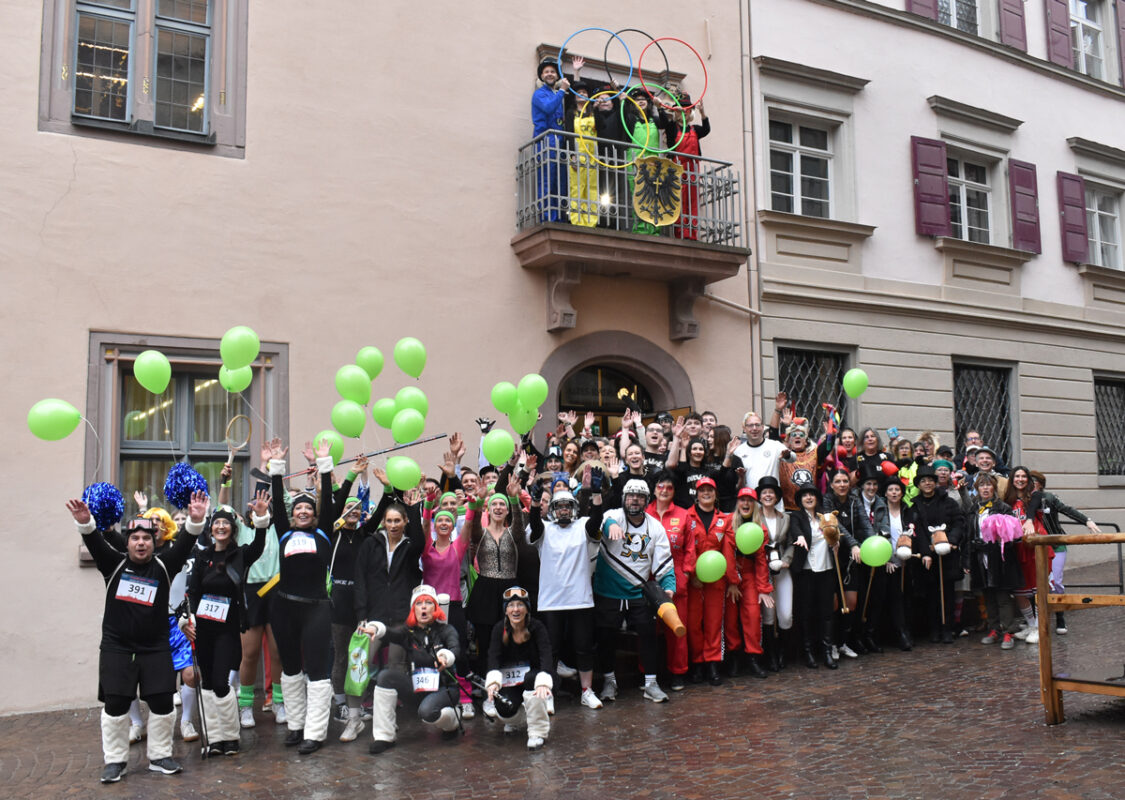 Sie waren die erste Narrengruppe auf der oberen Hauptstraße heute Vormittag: Die Belegschaft des Rathauses kam in Dress und Training. Nach dem Motto „Wir nehmen’s sportlich“.