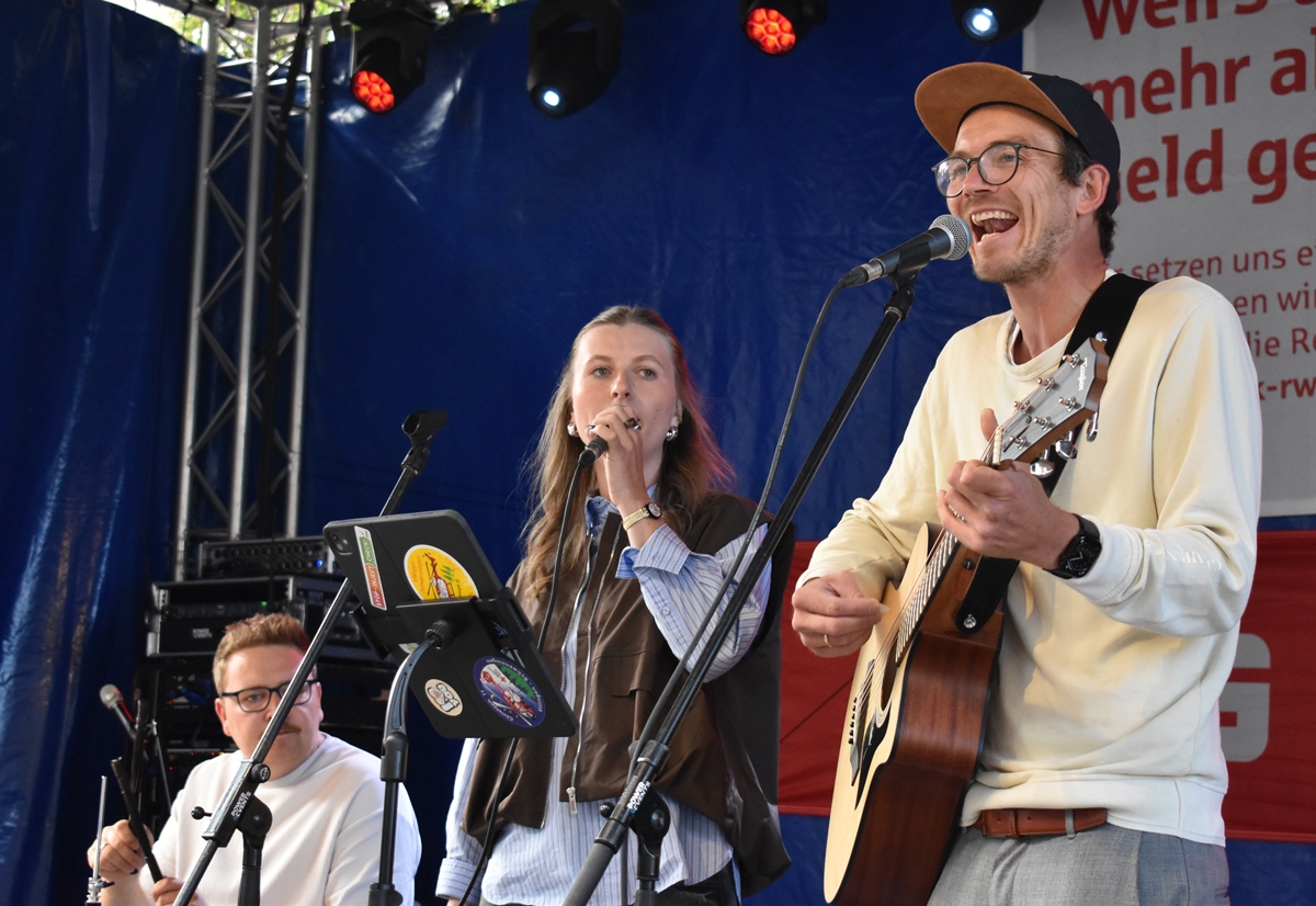 Das schöne Wetter lockte am heutigen Sonntag wieder zahlreiche Besucher in die Innenstadt, so dass sich wieder das gewohnte Stadtfest-Gefühl einstellte: Es brauchte Geduld, um auf der oberen Hauptstraße voran zu kommen. Vor einigen Ständen bildeten sich lange Schlangen vor Durstigen und Hungrigen. OB Ruf zeigte sich denn im Gespräch mit der NRWZ auch hochzufrieden mit dem Stadtfest.