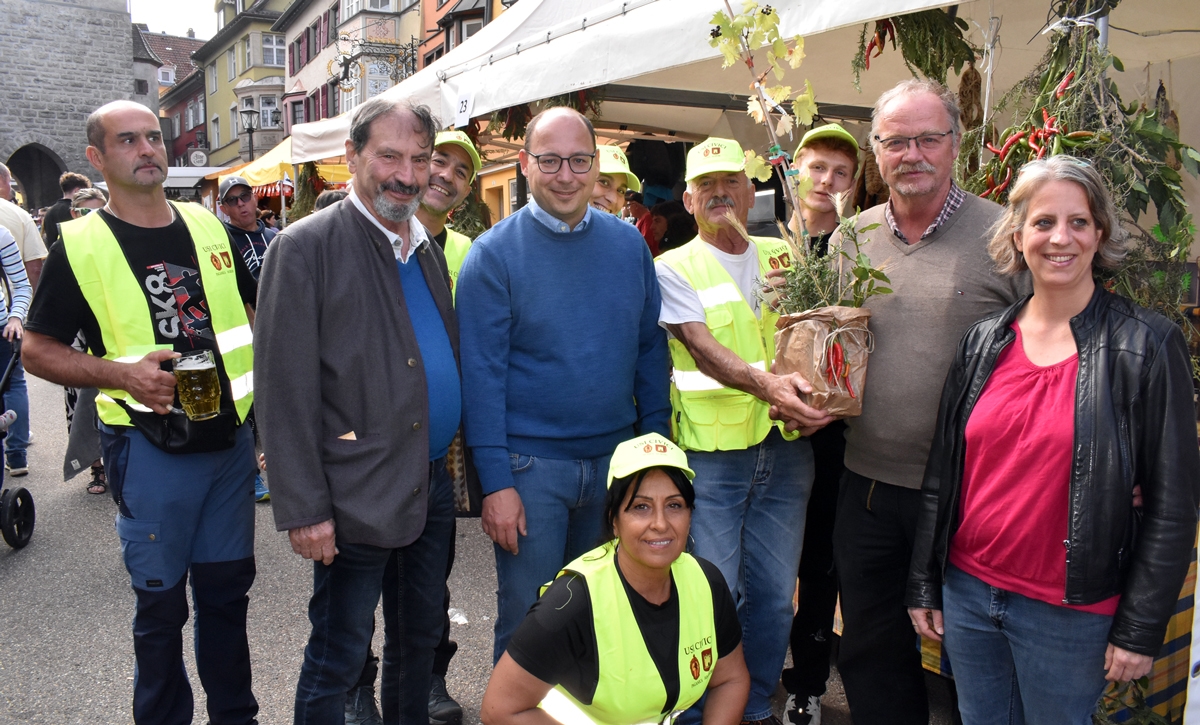 Ein Geschenk durfte Oberbürgermeister Dr. Christian Ruf entgegennehmen: Er erhielt am Stand de „Amici dell’ Aquila“ einen Rebstock aus der italienischen Partnerstadt.