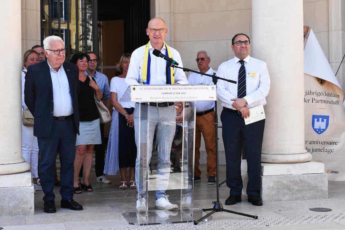 Und weiter: „Es ist auch unsere Aufgabe hier und heute, Freundschaften zwischen uns und zwischen den Menschen anderer Nationen zu leben und den europäischen Gedanken mit Leben zu erfüllen. Deswegen sind Rottweil und Hyères seit über 50 Jahren eng verbunden. Deswegen sind wir Rottweiler heute hier in Hyères!“
