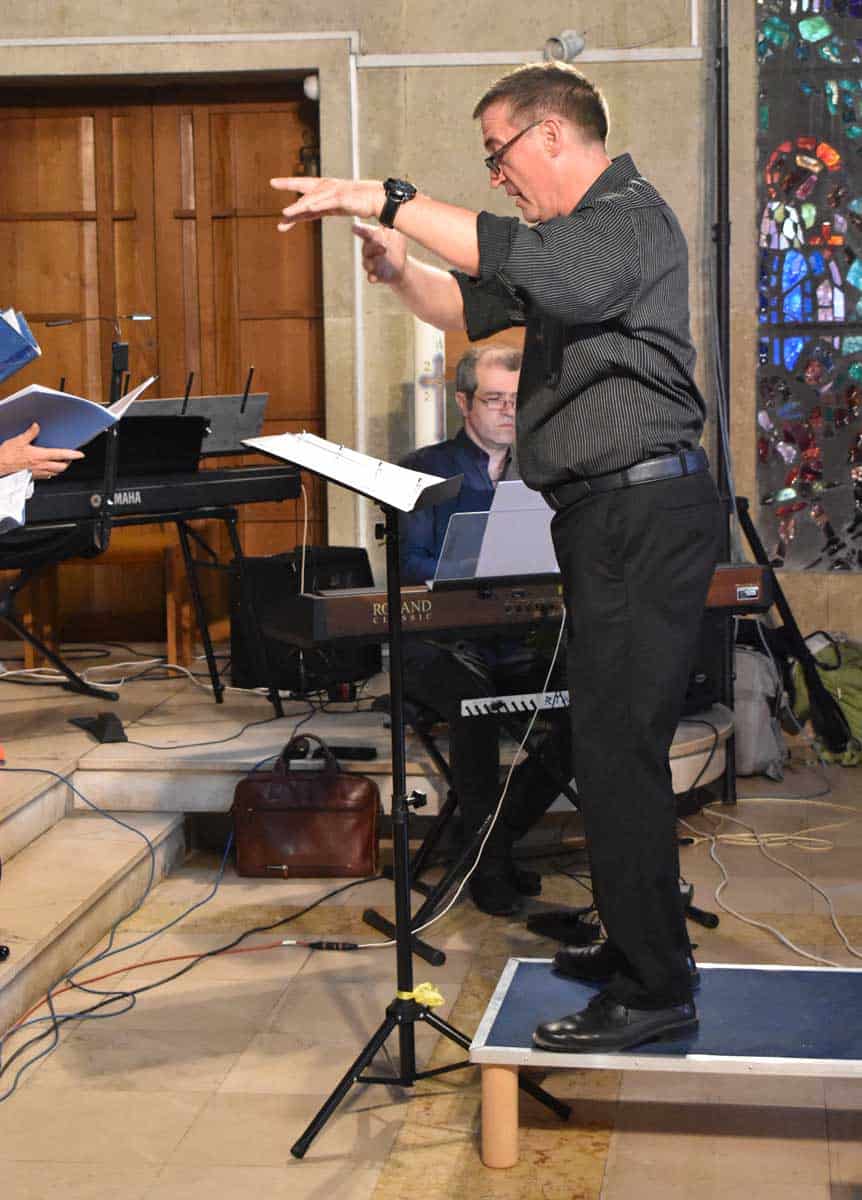 Cromm hatte auch die meisten Arrangements der Lieder geschrieben, eines sogar komponiert, die die Chorgemeinschaft unter seiner Leitung aufführte, teils auch von ihm am Keyboard begleitet. Und er hatte Pachelbels „Kanon“ mit Ralph McTells „Streets of London“ verbunden, was einer der Schwerpunkte der Aufführung war. Gospels und zwei Melodien aus Filmen, aber auch eine leicht-lockere Version von Bachs Menuett in D-Dur machten den bekömmlichen Mix aus. Der Auftritt endete mit dem optimistischen „Jaaa!“ am Ende von „Heaven ist a wonderful Place“.