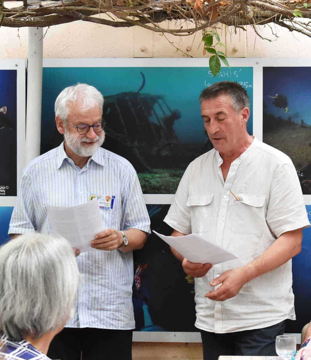 Weniger als halb offiziell war am Samstag das Jubiläums-Treffen von Chorgemeinschaft und Brise Marine. Die beiden Chöre wollten schon 2020 das Jubiläum ihrer Partnerschaft feiern, doch Corona verhinderte auch dieses. Die Chorgemeinschaft ist der einzige Verein, der von Anfang an seine Partnerschaft mit den Hyèrern hatte, die auch nach so langer Zeit noch besteht, wie Michael Leuchsner ausführte. Er gab als Zeitzeuge einen Rückblick auf die 52 Jahre. Dass in dieser Zeit Freundschaften nicht nur zwischen Chören, sondern auch zwischen den beteiligten Personen gewachsen sind, betonte auch der amtierende Vorsitzende der Chors, Wolf-Dieter Bojus, bei einem gemeinsamen Essen. Nicht jeder der deutschen Sängerinnen und Sänger der Chorgemeinschaft spreche Französisch, nicht jede von Brise Marine Deutsch – „aber die wichtigste Sprache ist die Musik, die uns verbindet“.