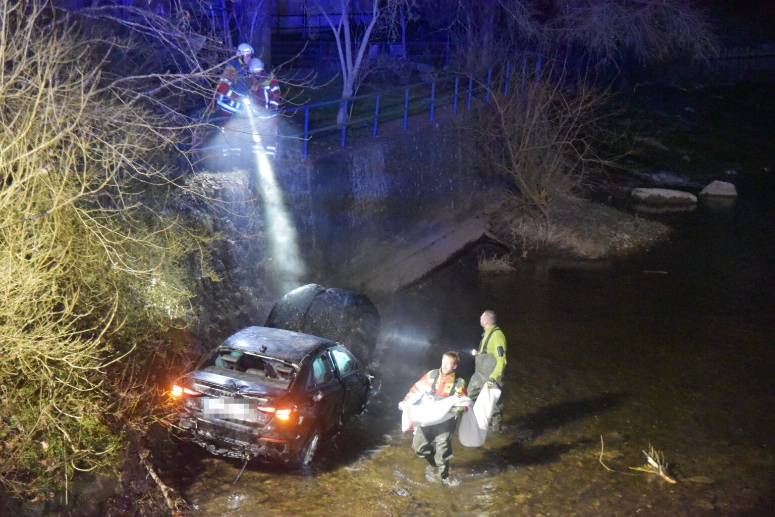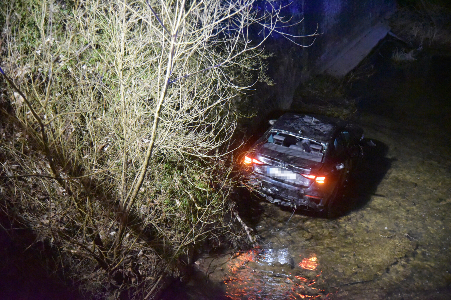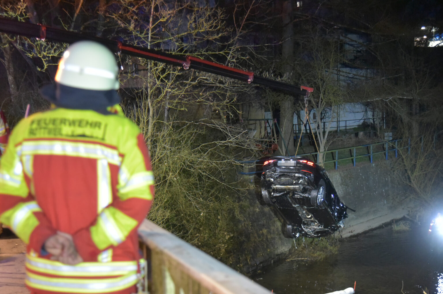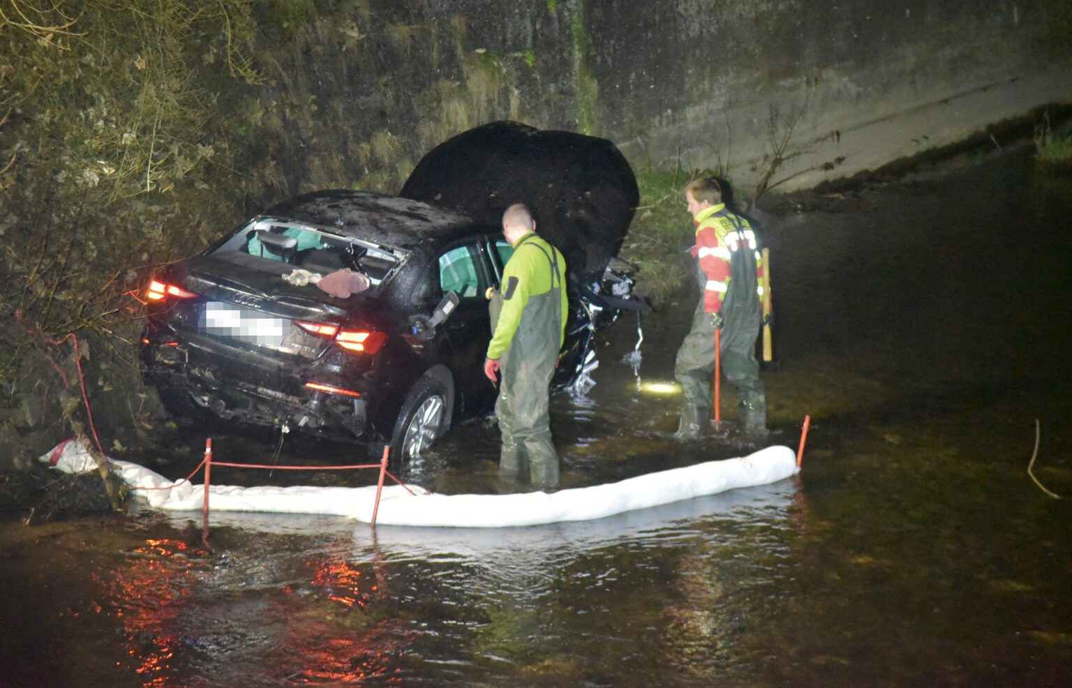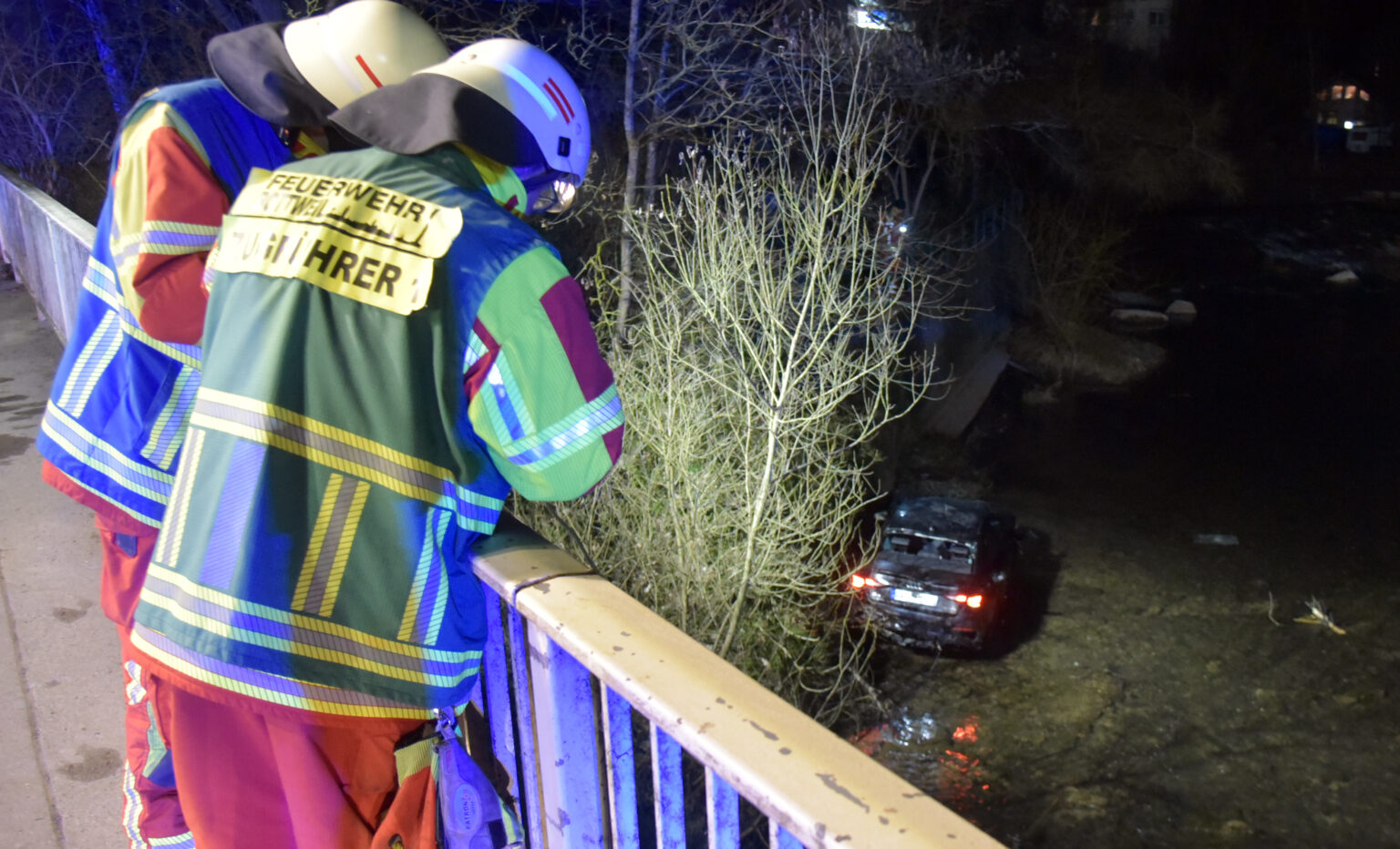 In der Nacht auf Sonntag ist in der Tuttlinger Straße in Rottweil ein Audi A4 von der Straße abgekommen und im Neckar zum Stehen gekommen. Zwei Menschen wurden verletzt und kamen ins Krankenhaus. Feuerwehr, Rettungsdienst, Polizei, Abschleppdienst und Umweltamt waren im Einsatz.