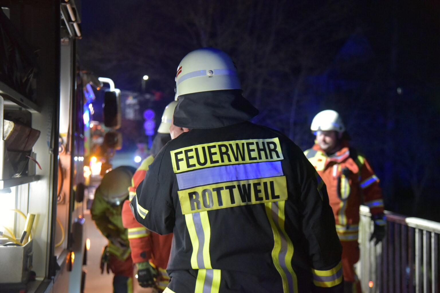 Die Feuerwehr wurde hinzugezogen, um auslaufende Betriebsstoffe zu sichern, informierte der Rottweiler Feuerwehrsprecher Marius Daute. Die Einsatzkräfte errichteten zwei Ölsperren – eine direkt am Fahrzeug im Wasser, eine weitere einige Meter flussabwärts. Von Seiten des Umweltamts kam ein Vertreter vor Ort, um die Lage einzuschätzen. Er lobte die rasche Arbeit der Feuerwehr. Außerdem wurde ein Abschleppservice angefordert, um das Fahrzeug zu bergen. Die Einsatzleitung der insgesamt 22 Kräfte in sechs Fahrzeugen hatte Rottweils Stadtbrandmeister Frank Müller.