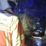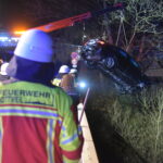 Die Insassen müssen dabei erstaunliches Glück gehabt haben: Beim Durchbrechen der Böschung verfehlte das Auto mehrere ältere und größere Bäume. Nach Einschätzung vor Ort hätte der Unfall leicht noch deutlich schwerer ausgehen können. Das Fahrzeug muss die Böschung regelrecht hinabgeflogen sein. Darauf deutet auch ein auffälliges Bild an der Unfallstelle hin: In mehreren Metern Höhe hängt ein Reifen in einem der Bäume an der Böschung.