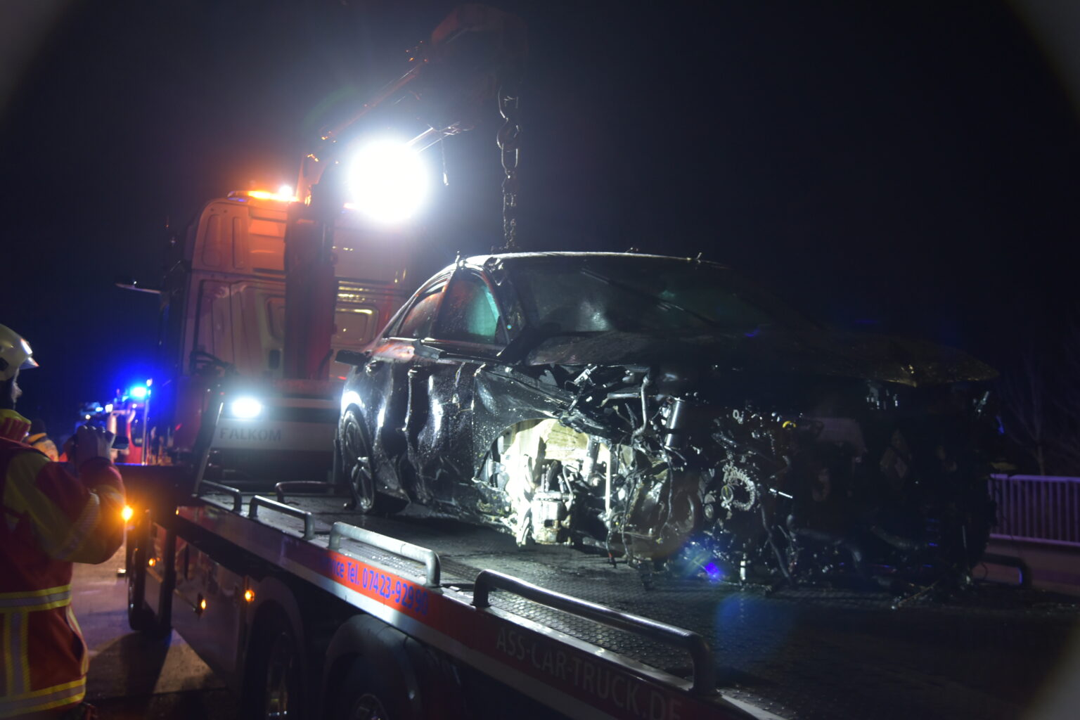 Der Unfall ereignete sich gegen 0.30 Uhr. Gegen 2.30 Uhr war der Einsatz für die Feuerwehr und den Abschleppdienst beendet.