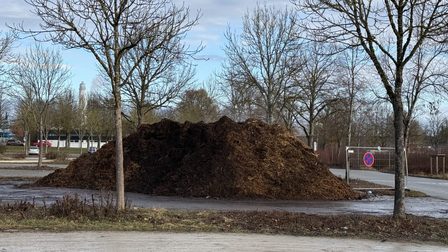Der Eindruck, es handle sich um Pferdemist, ist laut Stadt allerdings falsch. Bei dem Material handelt es sich um zerkleinertes Grüngut aus der Landschaftspflege. Dieses soll demnächst weiterverarbeitet werden – unter anderem zu sogenannter Terra Preta, einer besonders nährstoffreichen Schwarzerde.