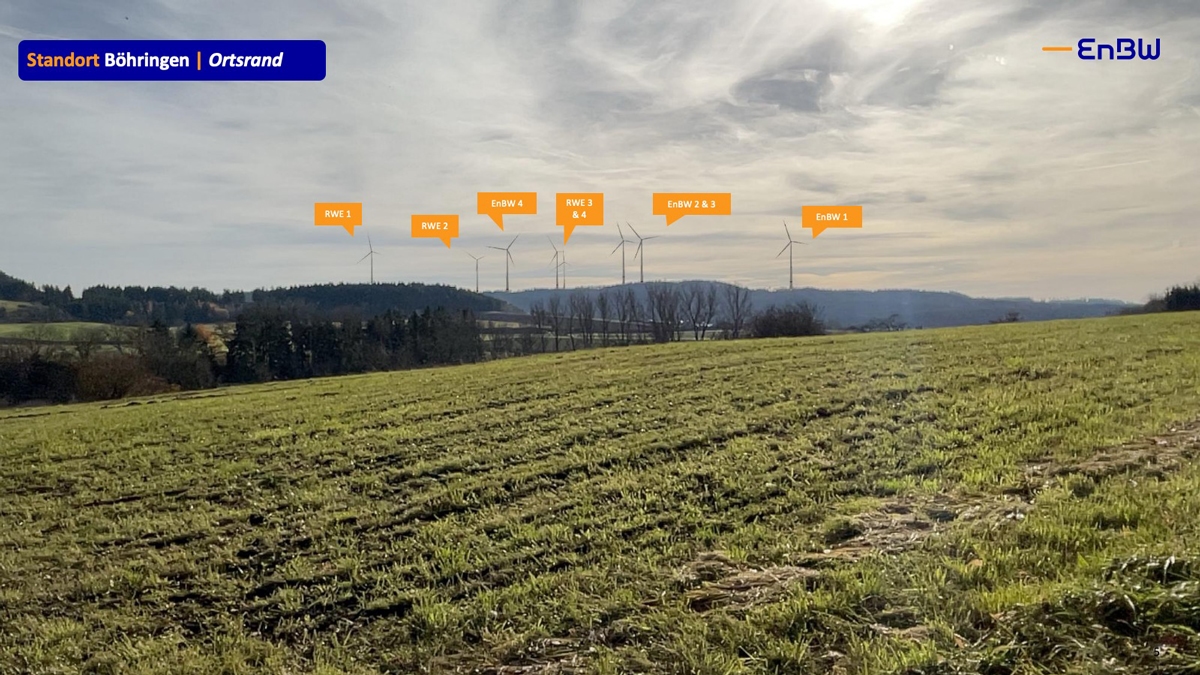 Wie sind die acht Windkraftanlagen von außen wahrnehmbar? Diese Frage, die nicht nur die Anlieger dort interessiert, haben die Betreiber aus verschiedenen Perspektiven sichtbar gemacht. Einige dieser Bilder hat uns die EnBW zur Verfügung gestellt, sie sind hier im Folgenden zu sehen.