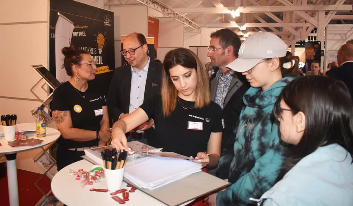 Rottweil – Mehr als 850 Schülerinnen und Schüler aus Rottweil und der Region nutzten die Möglichkeit, sich über die breite Vielfalt an Betrieben und Ausbildungsmöglichkeiten zu informieren. 95 Aussteller präsentieren sich an 100 Messeständen in den Hallen sowie auf dem Freigelände.