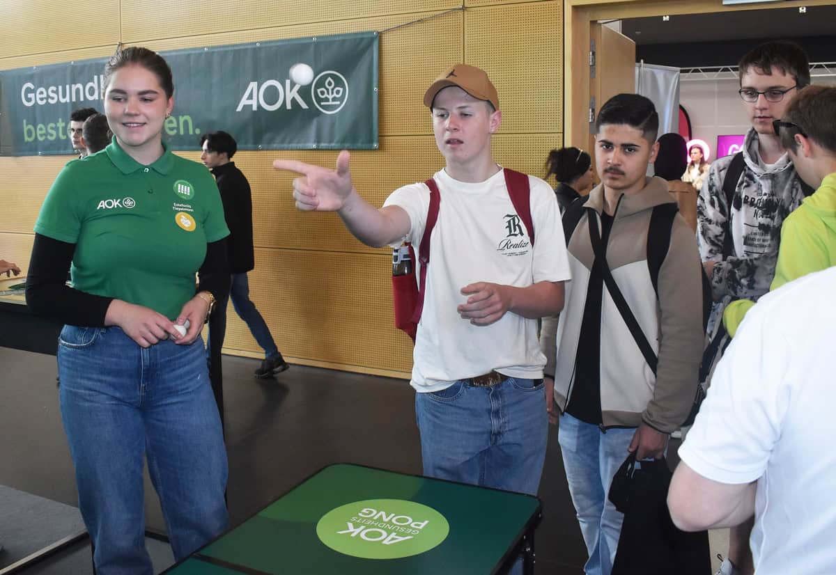 Die namhaften Aussteller aus der Region haben wieder alles aufgefahren, um sich zu präsentieren und die jungen Menschen für eine Ausbildung zu gewinnen. Besonders gut kommt es an, wenn es an den Ständen etwas zum Ausprobieren gibt. Diese Angebote werden von den Schülerinnen und Schülern ausgiebig genutzt.