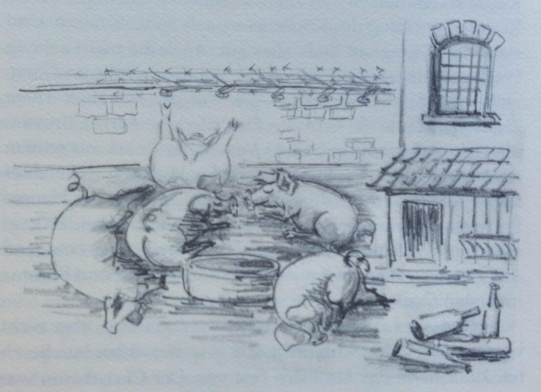 Der herbeigerufene Tierarzt, inspizierte zuerst die reglosen Vierbeiner und dann deren Weihnachtsmahl. „Den Kübeln entstiegen süße Düfte aus Resten kalter Ente, Rottweiler Pflugbieres und Niersteiner Domtals“, erläutert Lang den Befund. Worauf der Veterinär messerscharf schloss, die „Sauen send net tot, dia send bloß bsoffa.“ So endete diese Weihnachts-„Sauerei“ letztlich für alle glimpflich.