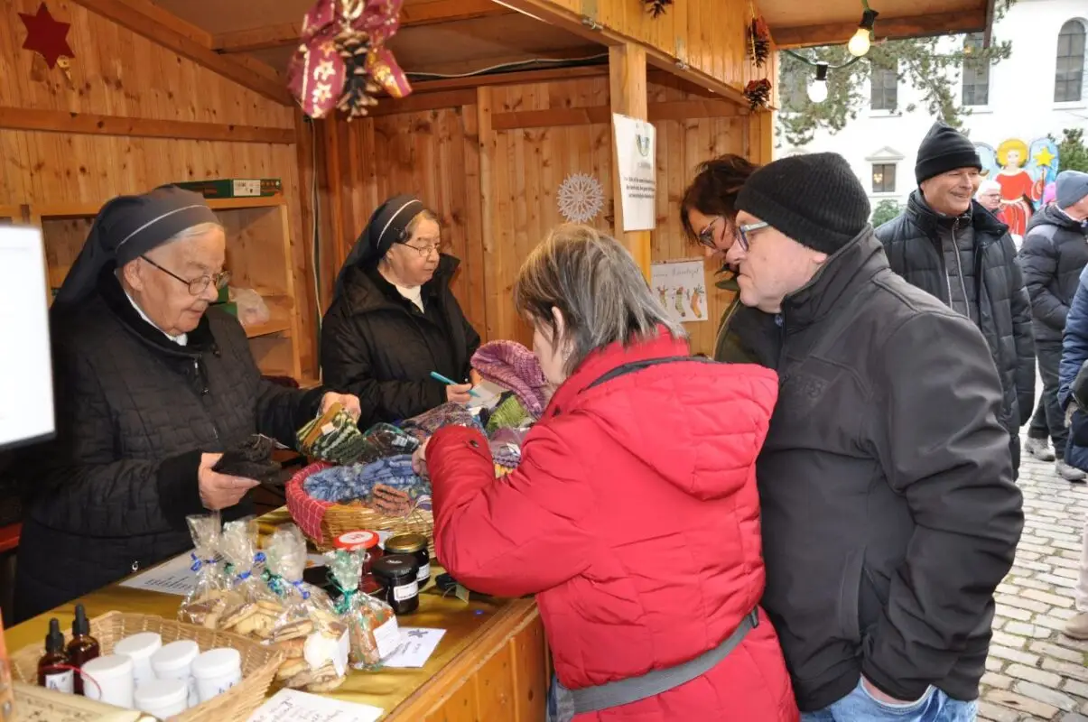 Musikalisch begleitet von Turmbläsern eröffnete Schwester Oberin Karin Maria Stehle den traditionellen Weihnachtsmarkt. Dank seines besonderen Ambientes, des abwechslungsreichen Rahmenprogramms und der vielfältigen Angebote erfreute sich der Markt erneut großer Beliebtheit. In der festlich geschmückten Klosteranlage boten verschiedene Bereiche des Hospitals eine bunte Mischung an kunsthandwerklichen Artikeln, Holzspielzeugen, liebevoll Gebasteltem und Gestricktem bis hin zu selbst gebackenen Plätzchen und hausgemachten Wurstspezialitäten.