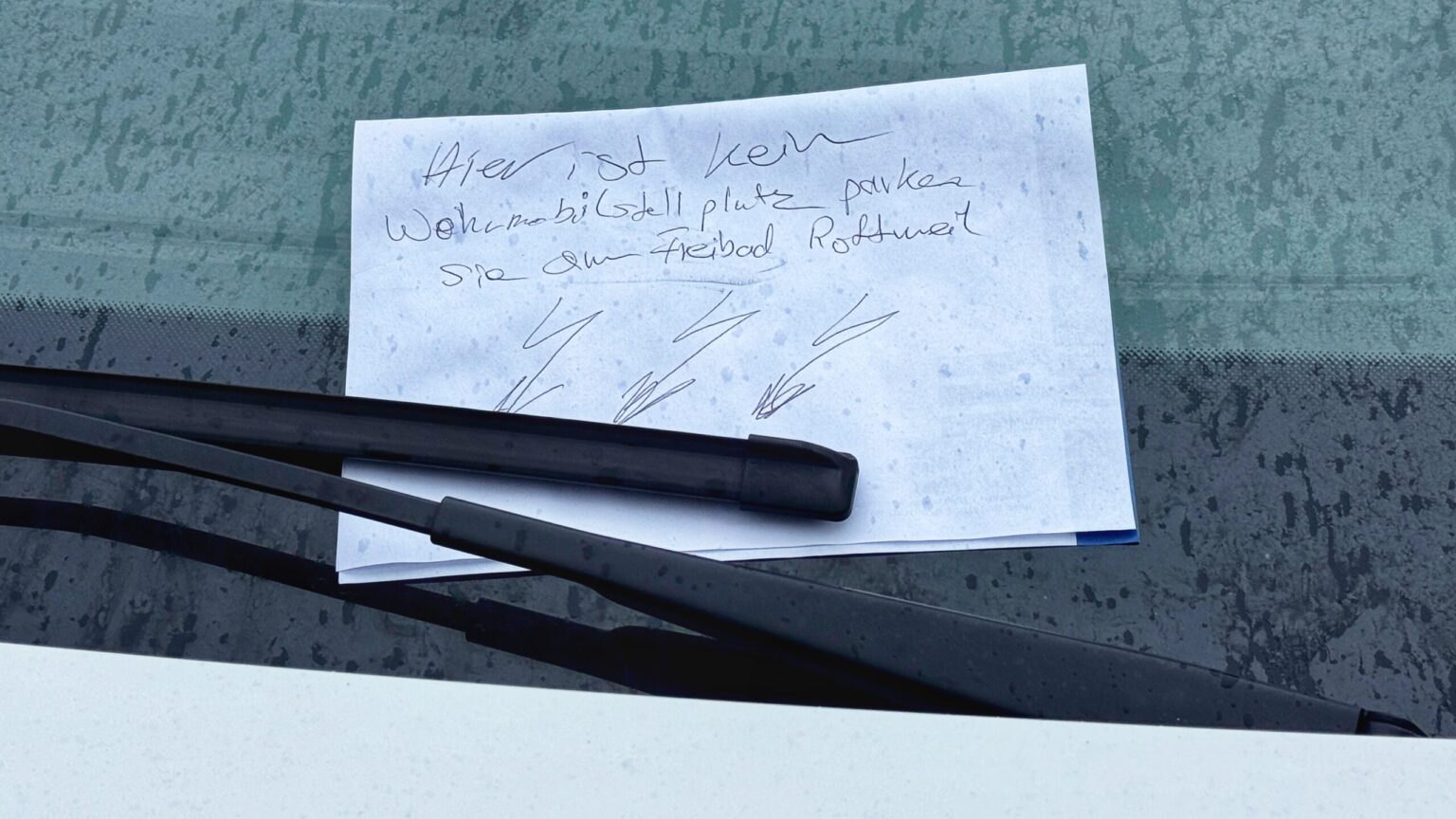 Rottweil – „Hier ist kein Wohnmobilstellplatz, parken Sie am Freibad Rottweil“: Mit diesem Zettel am Scheibenwischer eines Campers hat ein bislang Unbekannter in einer Rottweiler Wohnstraße seinem Ärger Luft gemacht. Ein Wohnmobil steht dort, wo sonst Autos parken – ganz normal am Straßenrand. Doch wer hat in so einem Fall das Recht auf seiner Seite: der Absender des Zettels oder der Wohnmobilbesitzer?