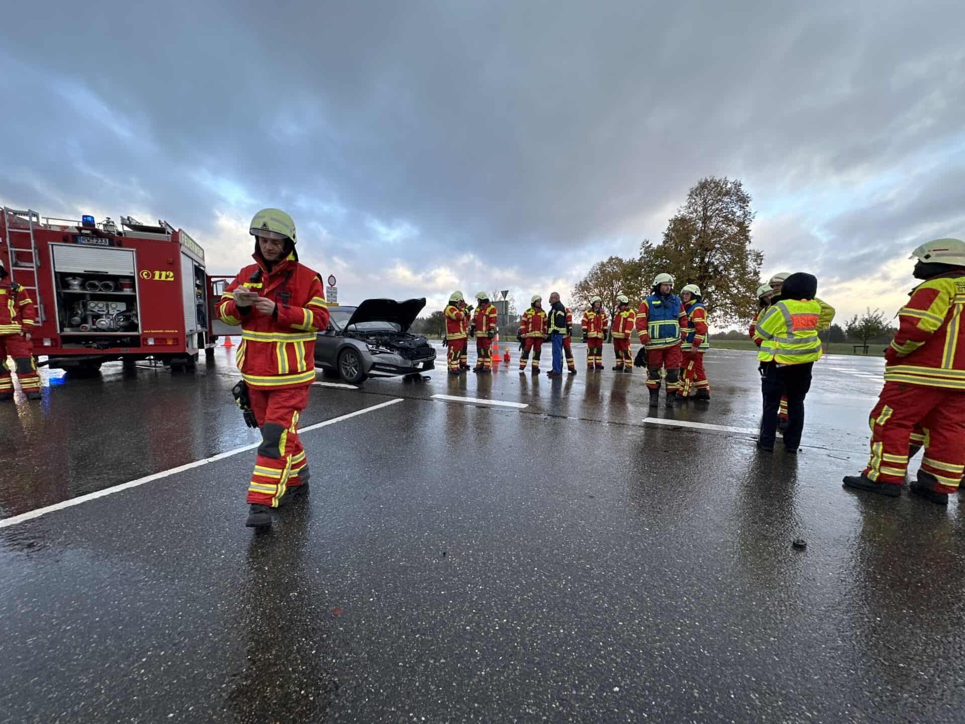 Die Feuerwehr Rottweil war mit großem Aufgebot vor Ort. Laut dem Rottweiler Feuerwehrsprecher Marius Daute mit sieben Fahrzeugen und 32 Einsatzkräften unter der Einsatzleitung von Stadtbrandmeister Frank Müller. Dies, weil zunächst die Lage völlig unklar war: Die Leitstelle war per so genannten eCall, also automatisiert, über den Unfall informiert worden. Einen Lagebericht hatte sie nicht. Der Disponent in der Leitstelle musste daher vom Schlimmsten ausgehen.