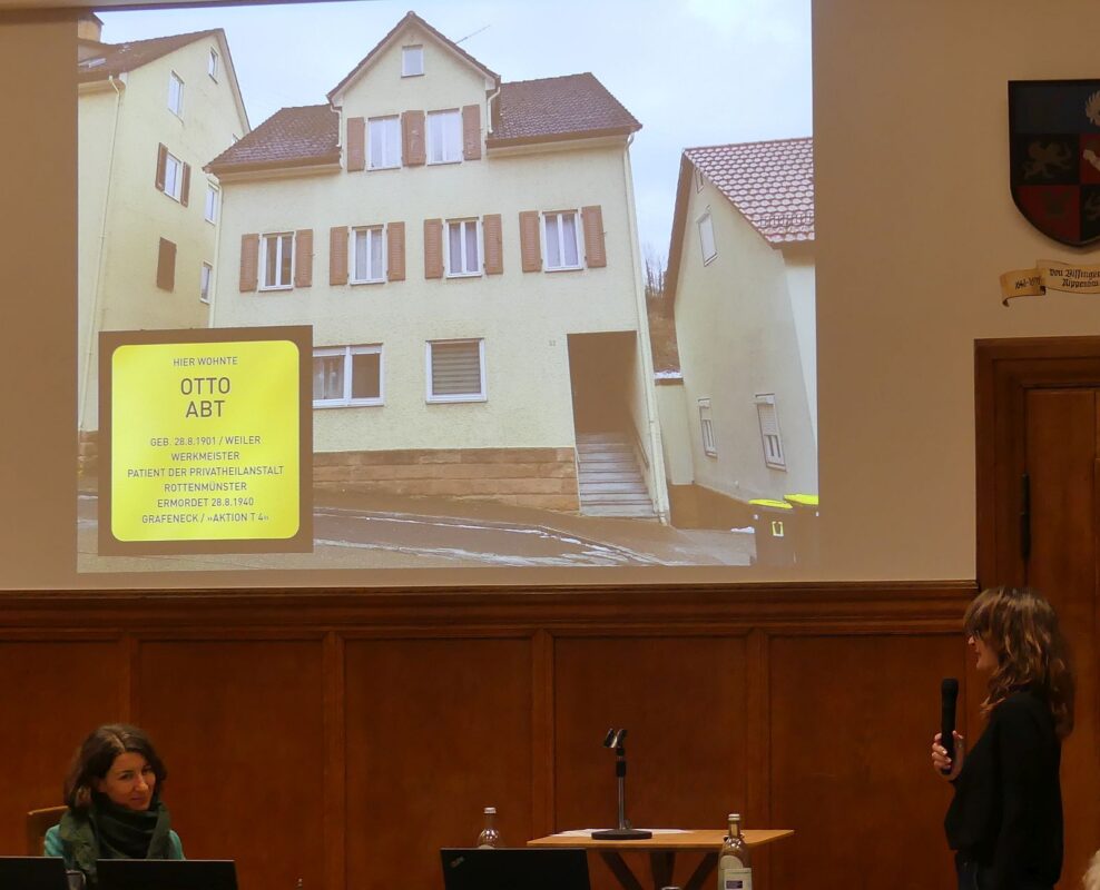 Von den ersten 25 Stolpersteinen sind 14 den Euthanasie-Opfern gewidmet. In den Jahren 1940 und 1941 ließen die Nazis in der „Landespflegeheilanstalt Grafeneck“ im Rahmen der „Aktion T 4“ fast 11.000 Behinderte und Kranke aus Süddeutschland ermorden. Kohlmann geht inzwischen von mehr als 60 Opfern aus Schramberg aus.