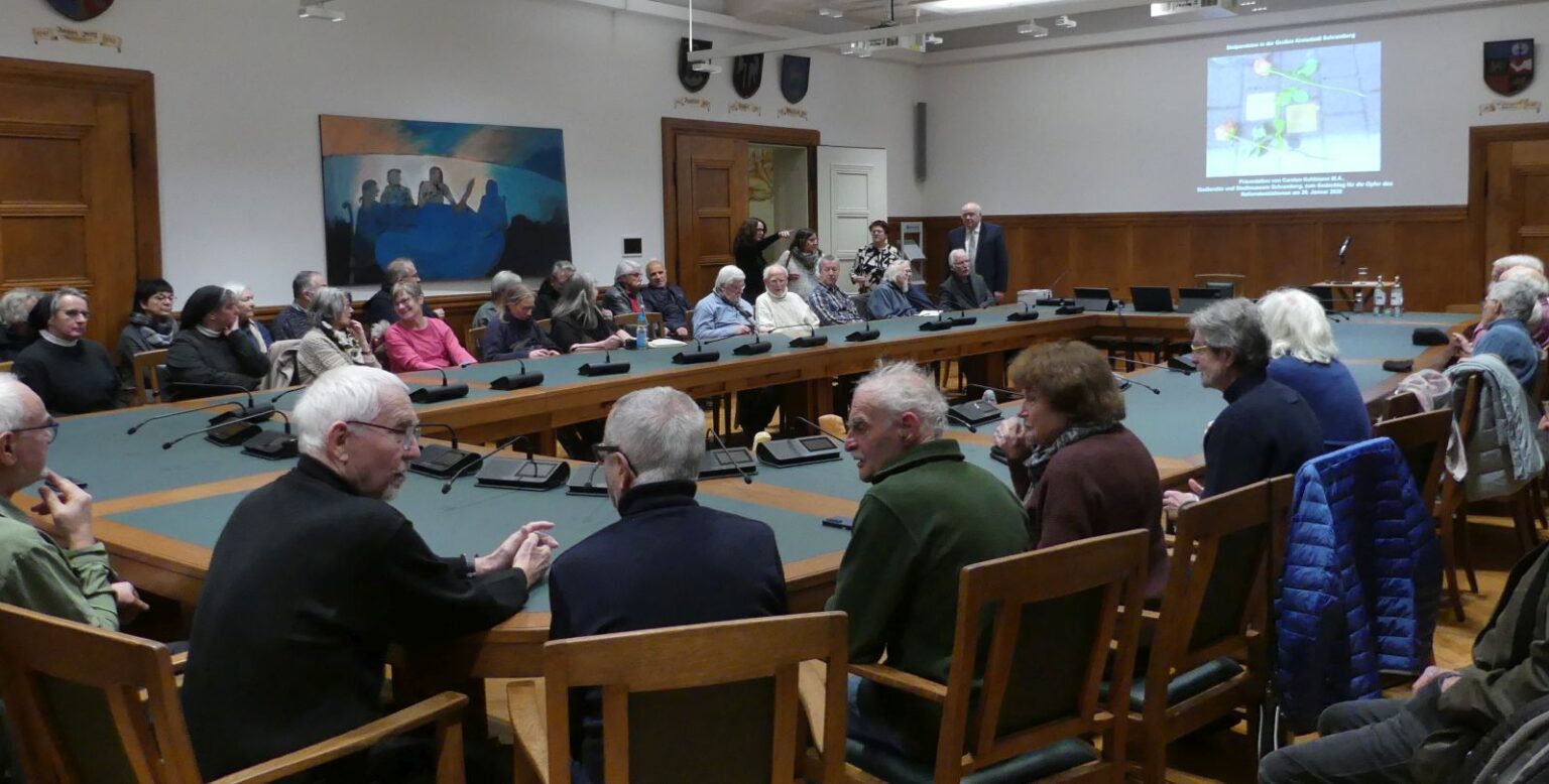 Wie seit etlichen Jahren Brauch lud die Stadt nach der Kranzniederlegung am Mahnmal für die Opfer des Faschismus zu einem Vortrag ein. Am Montagabend berichtete Stadtarchivar Carsten Kohlmann im Rathaus über seine Recherchen für die ersten 25 Stolpersteine.