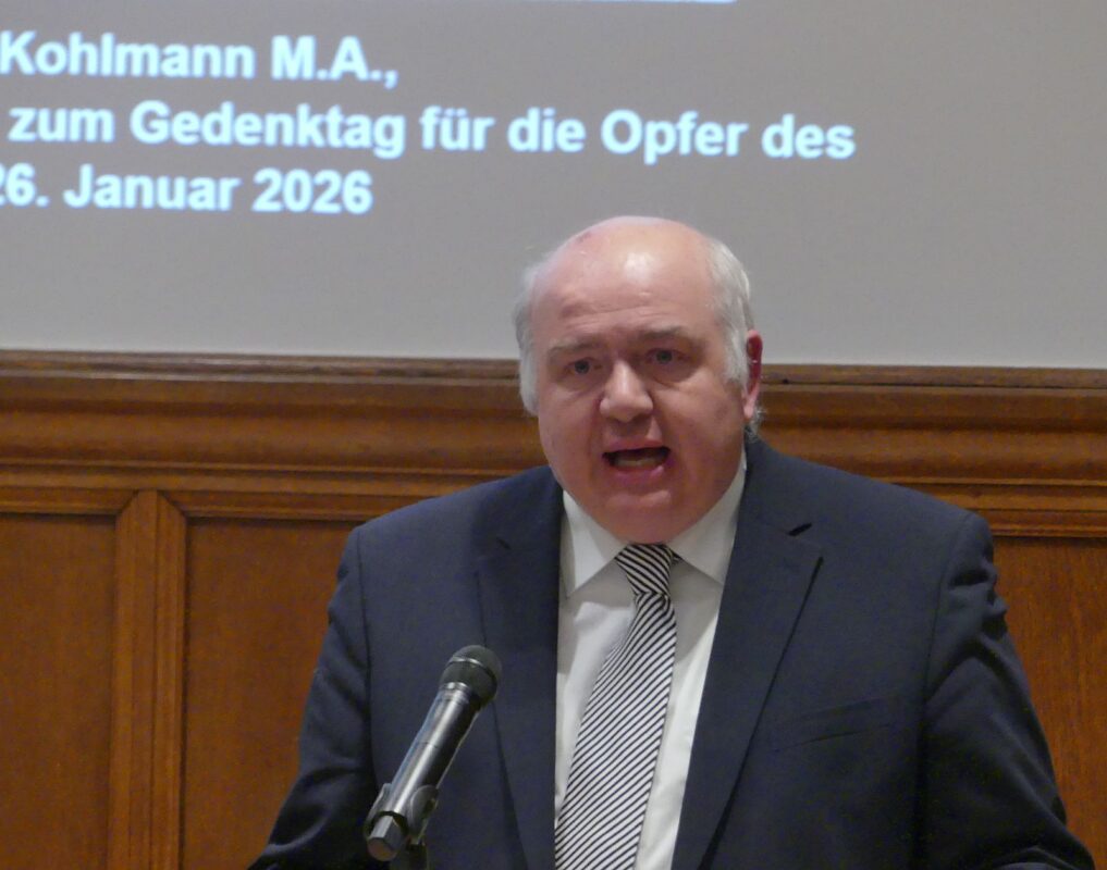 Kohlmann skizzierte auch die Entstehung der Stolpersteine. 1992 verlegte Demnig den ersten von inzwischen mehr als 100.000, die europaweit als größtes dezentrales Mahnmal an Menschen erinnern, die die nationalsozialistische Diktatur verfolgte, deportierte oder ermordete.