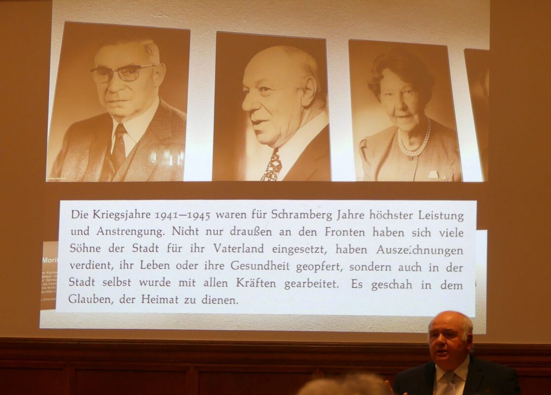 Zeittypischer war beispielsweise die Aussage des damalige Schramberger Oberbürgermeister Konstantin Hank, der 1956 die Kriegsjahre in Schramberg als „Jahre höchster Leistung und Anstrengung“ schilderte. „Es geschah in dem Glauben, der Heimat zu dienen.“ Kein Wort über die Verbrechen des NS-Regimes.