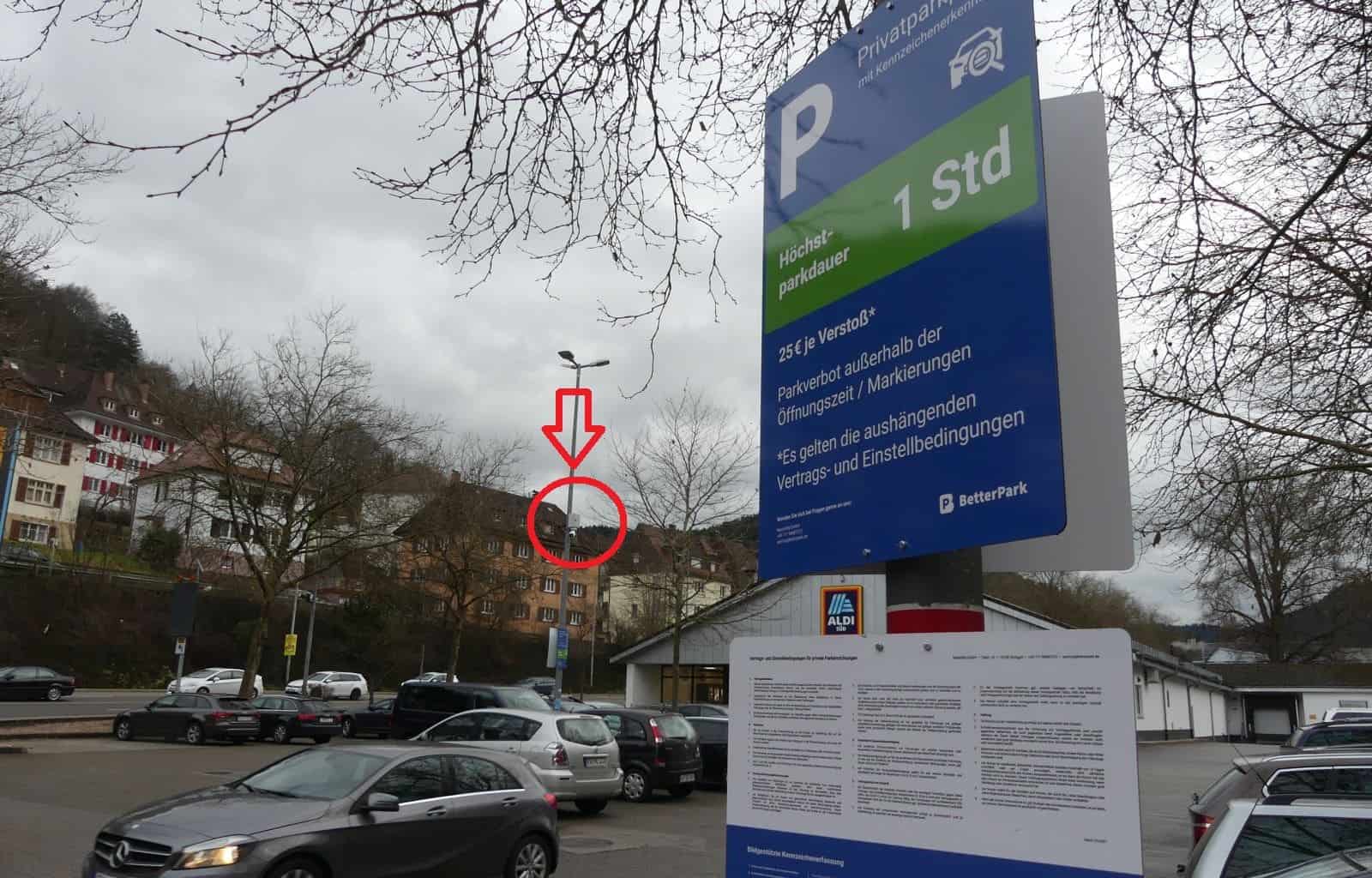 Auf dem Aldi-Parkplatz an der Bahnhofstraße gilt tatsächlich die Höchstparkdauer von einer Stunde. Überwachen lässt der Discounter diese Parkzeiten von einem externen Dienstleistungs-Unternehmen, der nexobility GmbH aus Stuttgart.