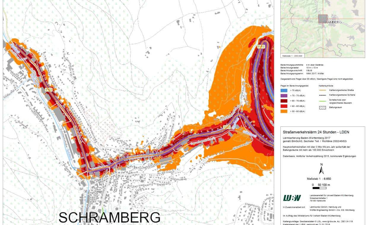 Schramberg – Um die Lärmbelästigung entlang der B 462 zu verringern, hat die Stadt Schramberg einen Lärmaktionsplan ausgearbeitet. Am Freitag endete die Frist der Öffentlichen Auslegung. Gegen den Vorschlag, auf fast der gesamten innerstädtischen Strecke, also vom Bereich Zimmrei Lauble bis zur Grüne-Baum Kurve, Tempo 30 einzuführen, wehren sich Aichhalden und Schiltach. Sie fürchten Ausweichverkehre durchs Eselbachtal und durch Aichhalder Loch.