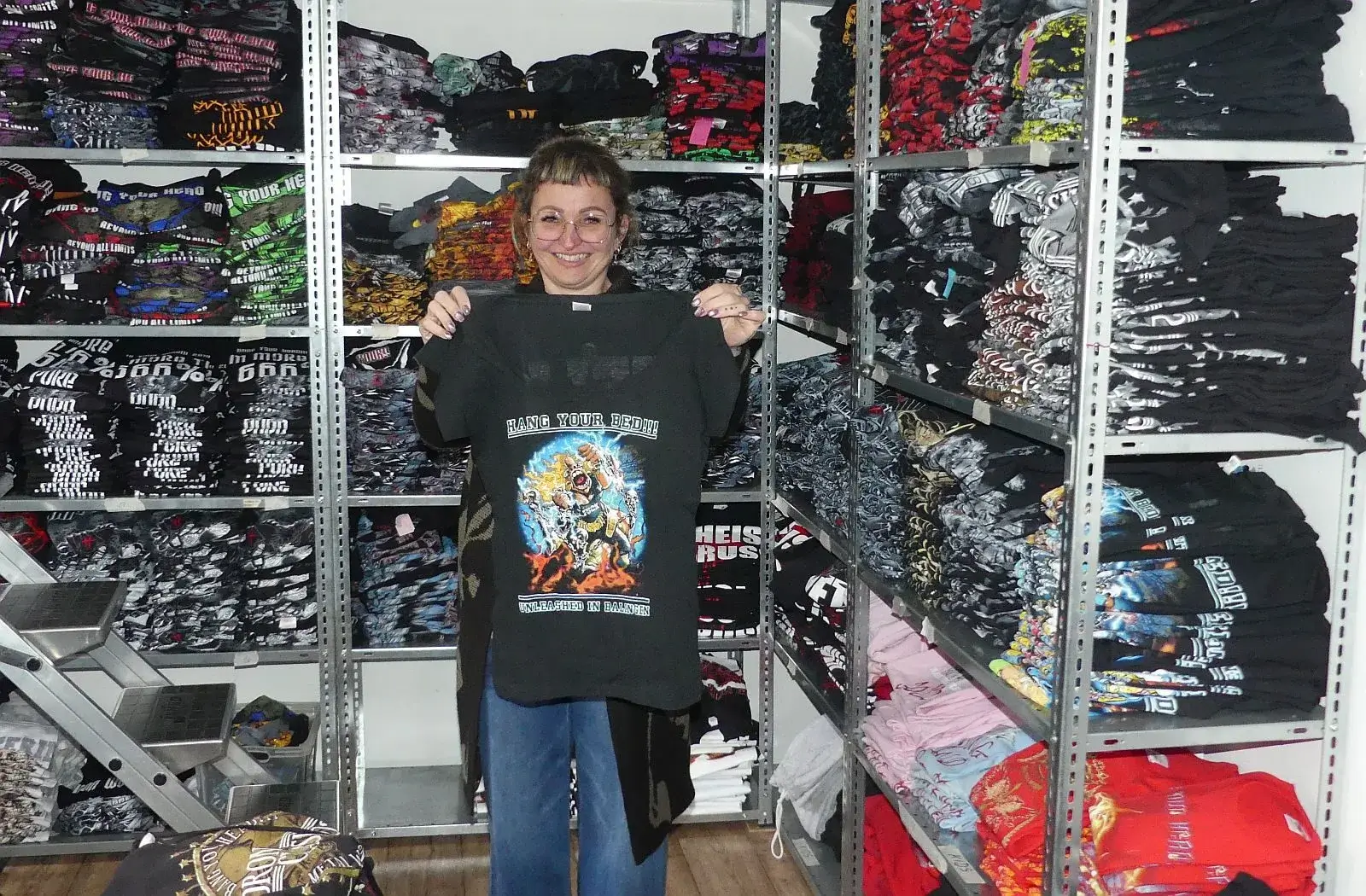 Der Mietvertrag endet aber nun zum 31. März. „Wir müssen bis dahin hier räumen.“ Mit einem letzten großen Lagerverkauf am Samstag, 15. März wollen die Jacobys noch mal allen Heavy-Metal-Fans die Gelegenheit bieten, Andenken an die „Bang-Your-Head“- Zeiten zu ergattern. Bei den T-Shirts möchte sie acht Euro, für ein Hoody 20 Euro. Sie verspricht aber: „Käuferinnen und Käufer bekommen jeweils eine Belohnung.“