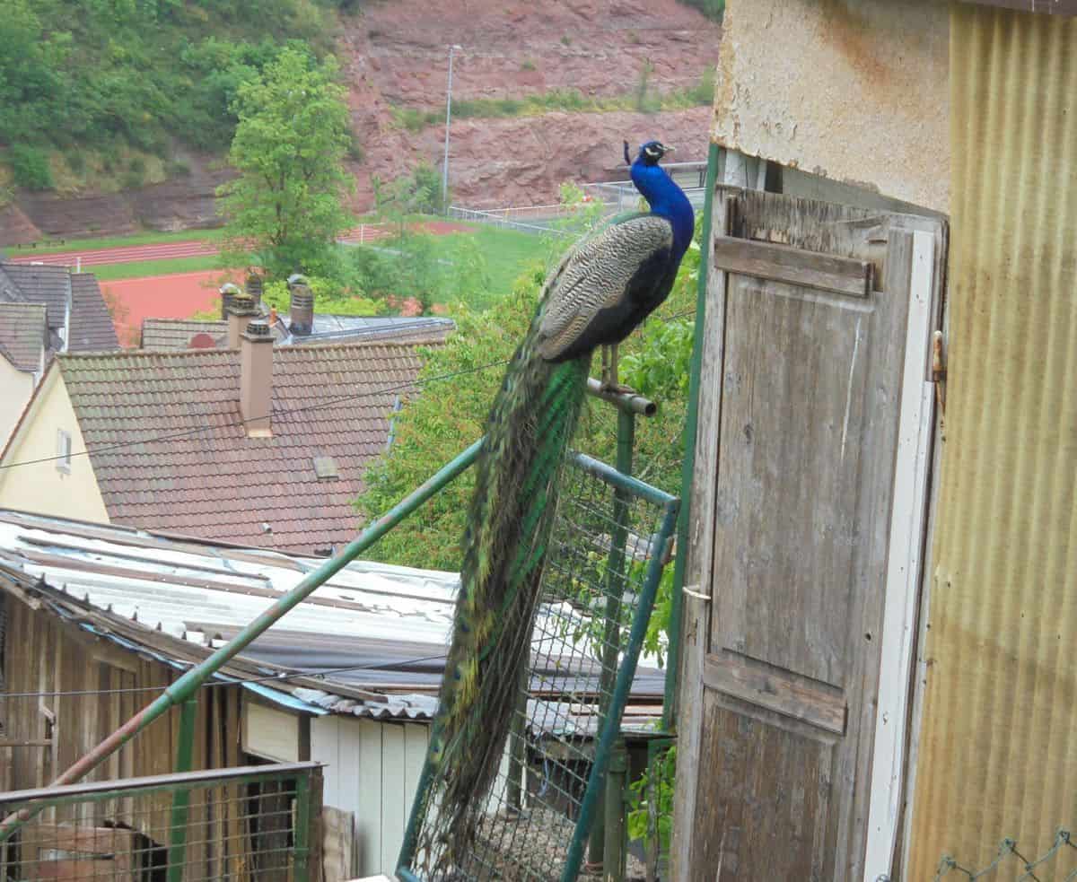 Auf dem Grundstück hatte der Hausbewohner zahlreiche Tiere gehalten, die sich teilweise noch immer dort befinden: einige Hühner und Enten, drei Hunde und ein Pfau.