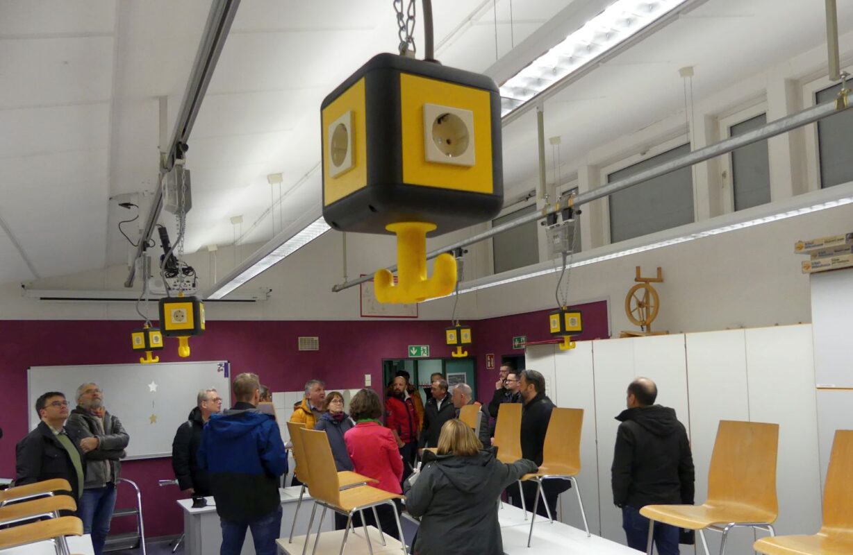 Im Handarbeitsraum und im Werkraum befinden sich offene Stromschienen. Diese sollen jetzt abgedeckt werden.