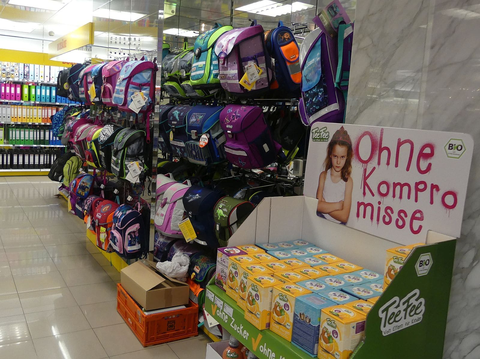 In Schramberg verkauft der Drogeriemarkt Müller weiterhin Schulranzen, während auf der anderen Straßenseite Lederwaren Krön schließen muss und auf das für ihn wichtige Ostergeschäft mit Schulranzen verzichten muss.