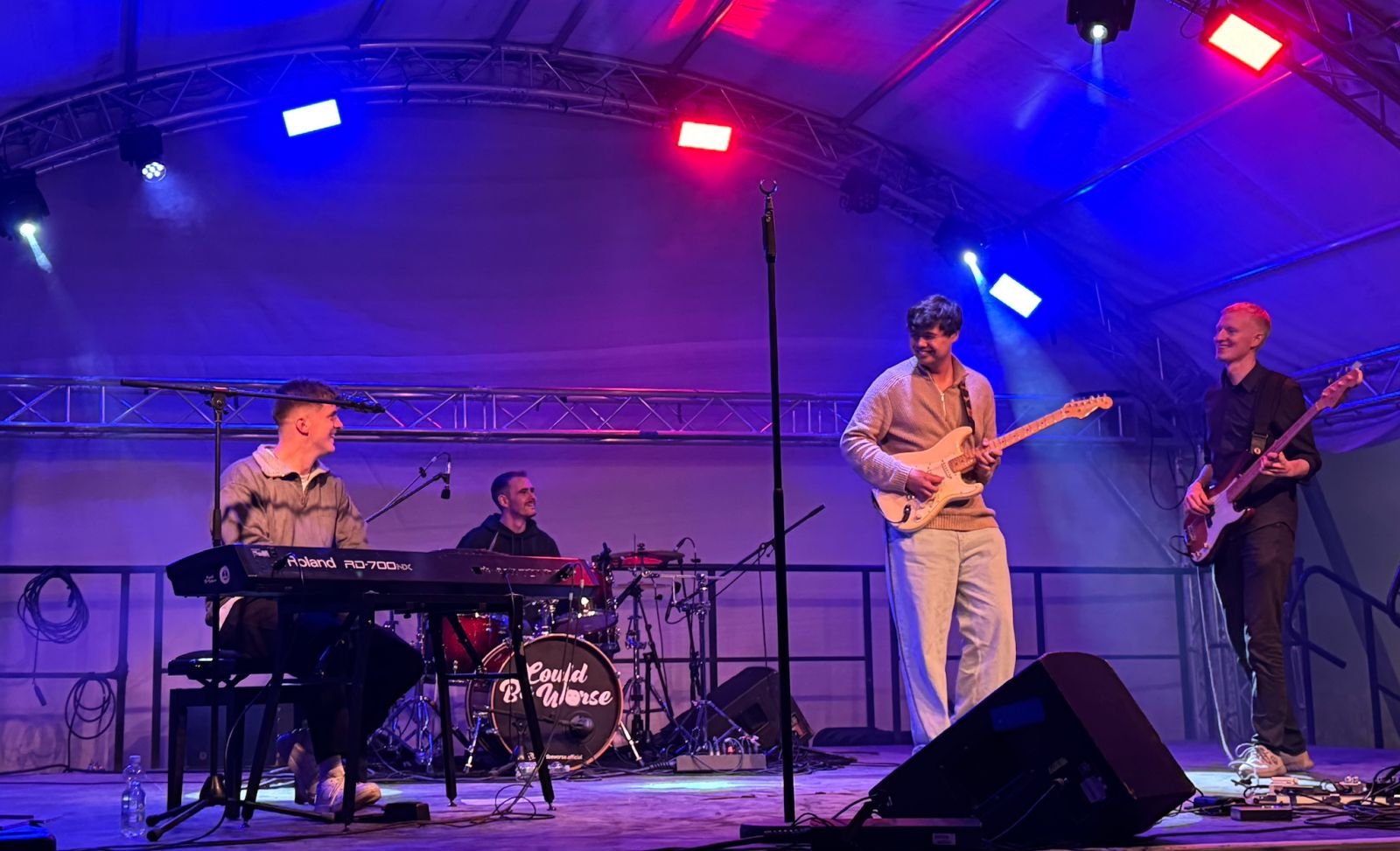 Could Be Worse schafften es, diese anfängliche Zurückhaltung aufzulösen. Mit einer Mischung aus eigenen Songs und Covern füllten sie den Platz bald mit einer Energie, die das Publikum zaghaft am Seitenrand tänzeln ließ. Mit etwas Animation kam noch Bewegung in den Abend und ließ das sitzende Publikum aufstehen.