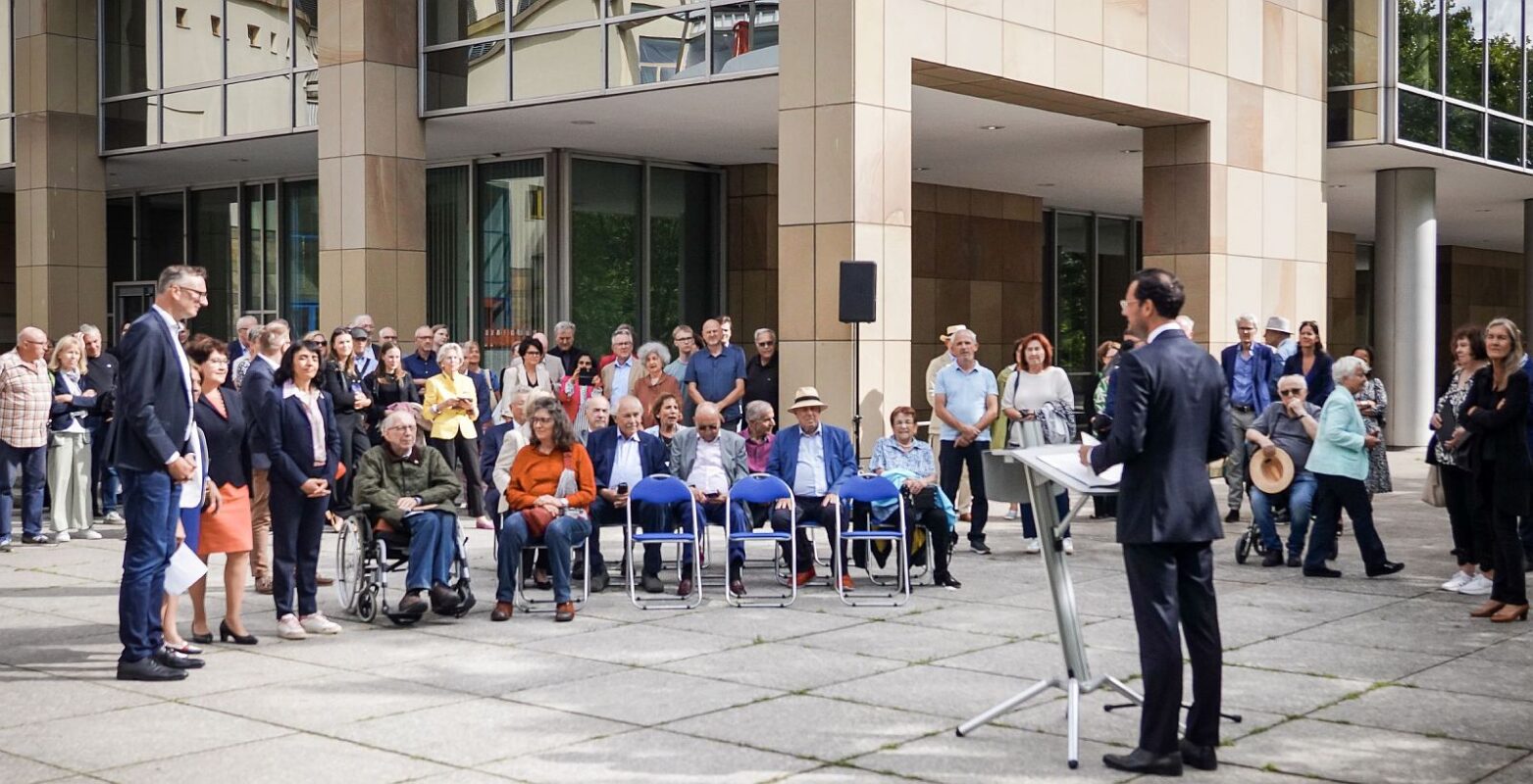 Bei einer kleinen Feier haben Vertreterinnen aus dem Landtag, der Stadt Stuttgart zusammen mit Elianne Schiedmayer und Hans-Jochem Steim die Enthüllung des Namensschilds gefeiert. Gekommen waren die Landtagspräsidentin Muhterem Aras, der Fraktionssprecher der Grünen Andreas Schwarz, die Karlsruher Abgeordnete Barbara Saebel und Stuttgarts Erster Bürgermeister Fabian Mayer.