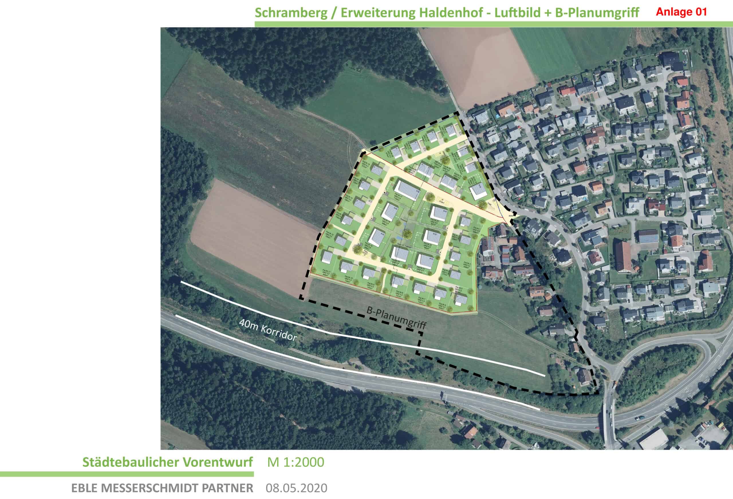Das neue Baugebiet schließt sich direkt an das bisherige Baugebiet Haldenhof an und war bisher Teil des Außenbereichs. „Die Stadt Schramberg möchte Wohnraum schaffen und dabei gleichzeitig verantwortungsvoll mit knapper werdenden Flächen umgehen“, heißt es in der Vorlage für den Gemeinderat. Deshalb wurde folgendes geplant, wie es weiter heißt: „verdichtete Bauweise, differenziertes Angebot an Gebäudetypologien, ausgewogenes Verhältnis zwischen Privatem und Öffentlichem und deren Vernetzung, Dachbegrünung, Photovoltaik, Gebäudeeffizienz und alternative Bauweisen/Baustoffe, Regenwasserbewirtschaftung sowie Durchgrünung und Durchlüftung des Baugebietes. Beim Thema Mobilität ist die Anbindung an den ÖPNV vorgesehen, Fußwegeverbindungen, es geht um ruhenden Verkehr und Elektromobilität. Ferner soll es Orte der Nachbarschaft und Begegnung sowie Barrierefreiheit geben.