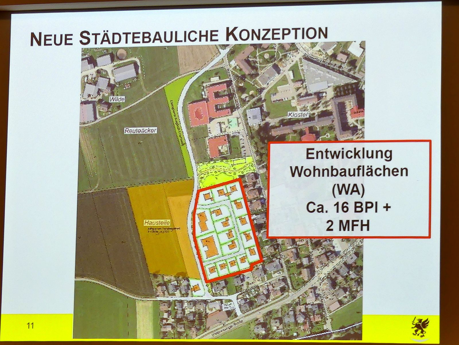 Die Zahl der Bauplätze würde sich wegen des generelles Bauverbots in der Wasserschutzzone 2 weiter auf etwa 16 Plätze für Einfamilienhäuser und zwei Mehrfamilienhäuser verringern. Westlich der neuen Erschließungsstraße gäbe es Entwicklungsflächen für die Stiftung. Würde die Stiftung die Flächen in zehn Jahren nicht brauchen, könne man sie in Wohnbaugrundstücke umwidmen.