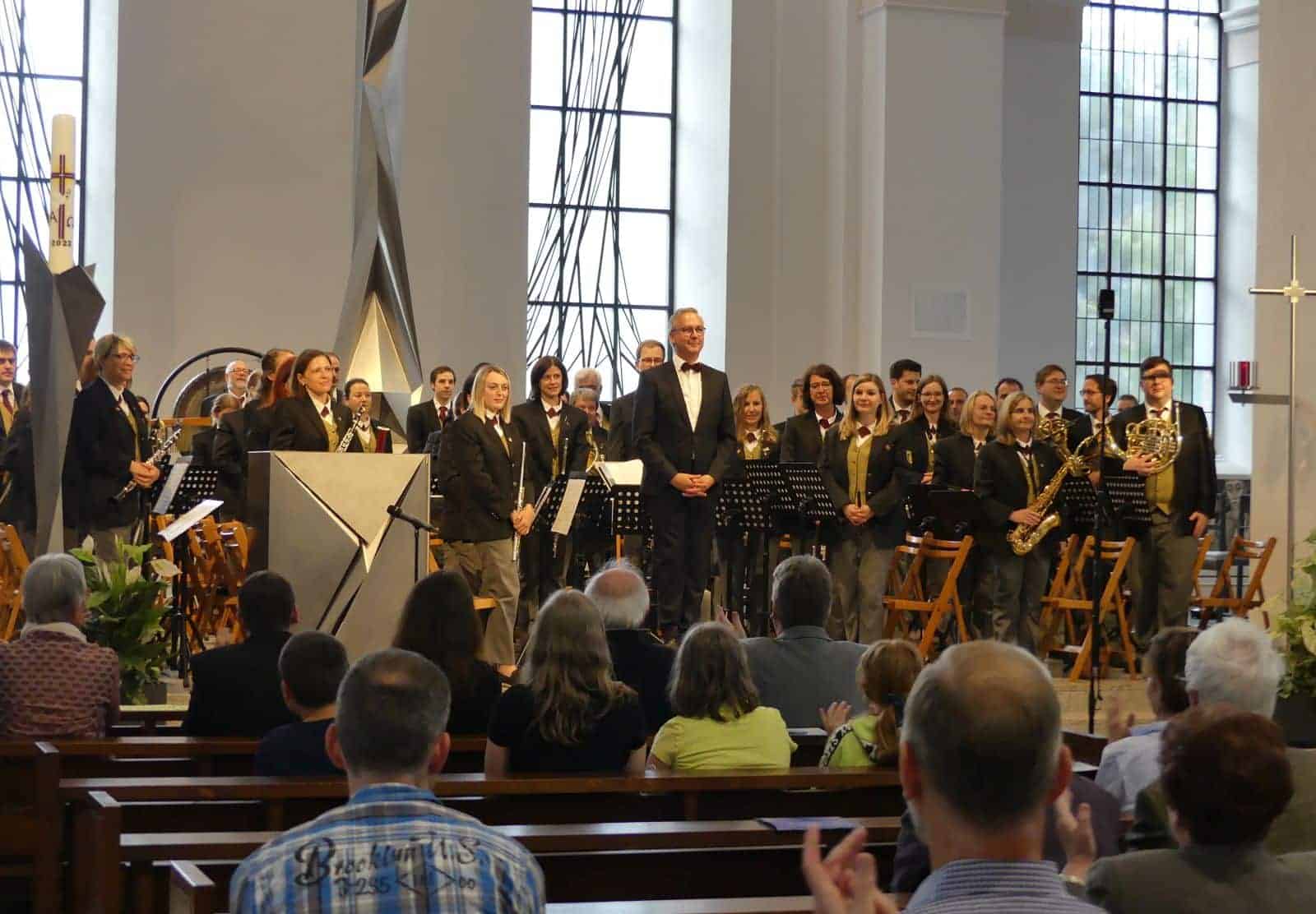 Hausherr Pfarrer Rüdiger Kocholl begrüßte die zahlreichen Gäste, unter ihnen Herbert O Zinell und seine Frau Ruth. Gekommen waren auch Pfarrerin Martina Schlagenhauf und ihr Mann Wolfgang – und in ihrer Funktion als OB-Stellvertreterin erhob sich im Orchester Tanja Witkowski mit ihrem Euphonium.