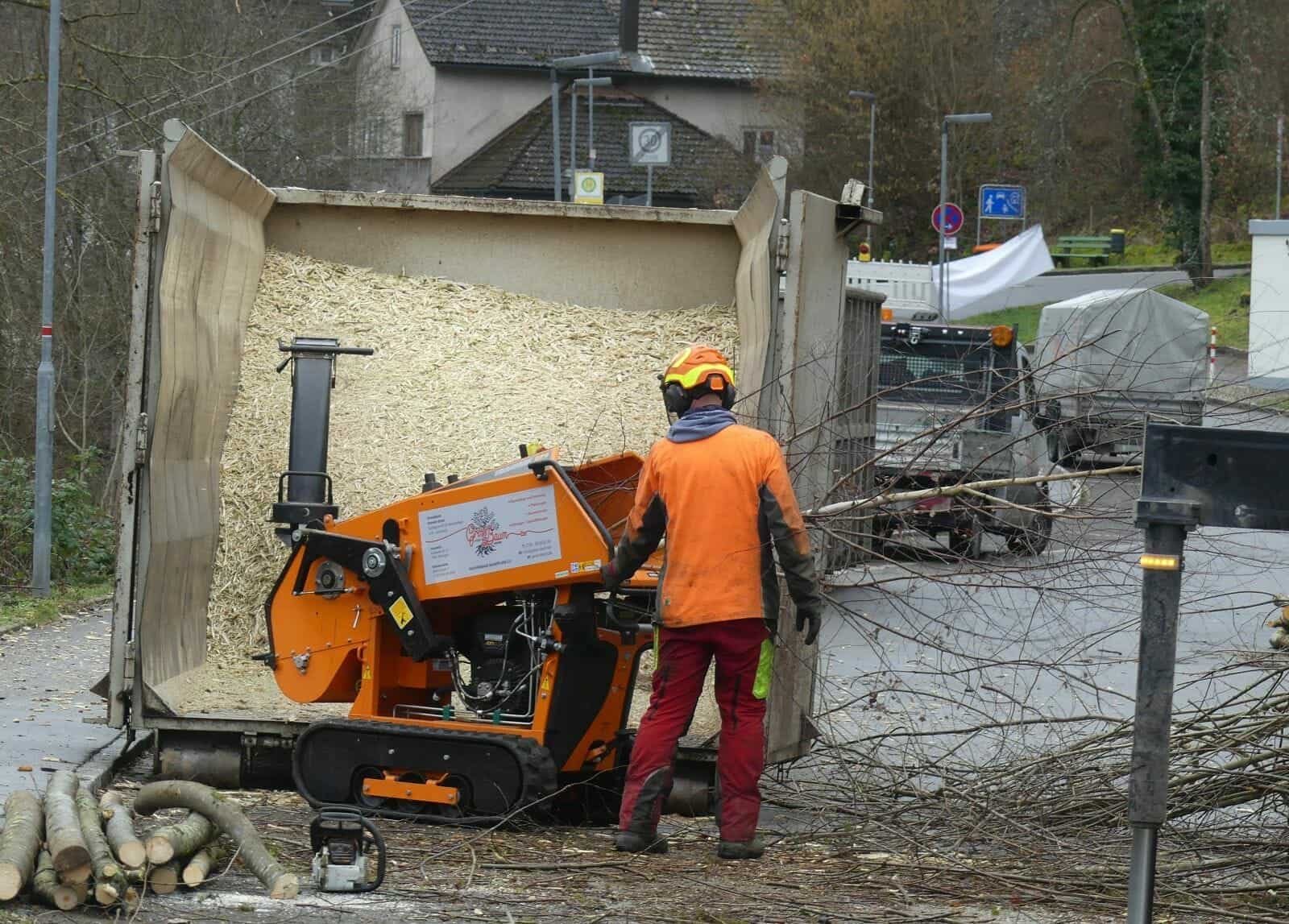 Schramberg. Mit Motorsäge und Häcksler gehen Mitarbeiter einer Gartenbaufirma dem Wäldchen zwischen Rochus-Merz-Straße und Burgweg zu Leibe. Seit Montag fällen sie die Bäume und Büsche im Auftrag der Firma Constant Projekt aus Esslingen.
