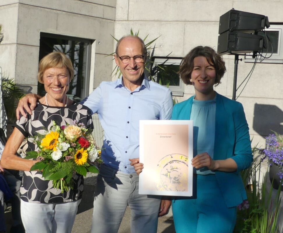 Der emotionale Höhepunkt des diesjährigen Sommerempfangs der Stadt Schramberg war die Verleihung von drei Ehrenbriefen an verdiente Bürgerinnen und Bürger der Stadt: Monika Rudolf, Anita Banholzer und Robert Hermann.