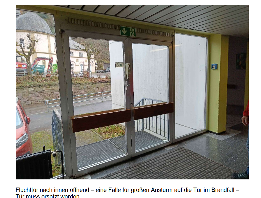 Susanne Andreae (SPD/Buntspecht) war baff: „Wie kann es sein, dass erst jetzt auffällt, dass die Türe nach innen aufgeht?“ Oskar Rapp (Freie/Neue Liste), der selbst bei der Feuerwehr ist, empörte sich ebenfalls über den fehlenden Rauchabzugsmotor und die zugestellten Feuerlöscher: „Ich will so etwas nicht sehen.“