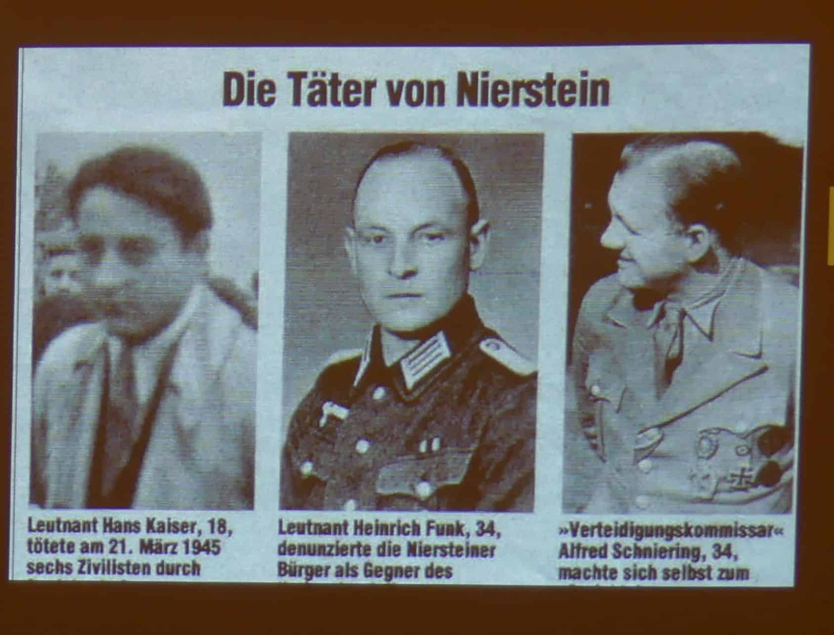 Am 18. März 1945 stellten Nazifunktionäre im Niersteiner Rathaus ein „Arbeitskommando“ aus politischen Gegnern zusammen. Sie schickten die sechs nach Darmstadt zur Gestapo. Die schickte sie wieder heim, es läge nichts gegen sie vor.
