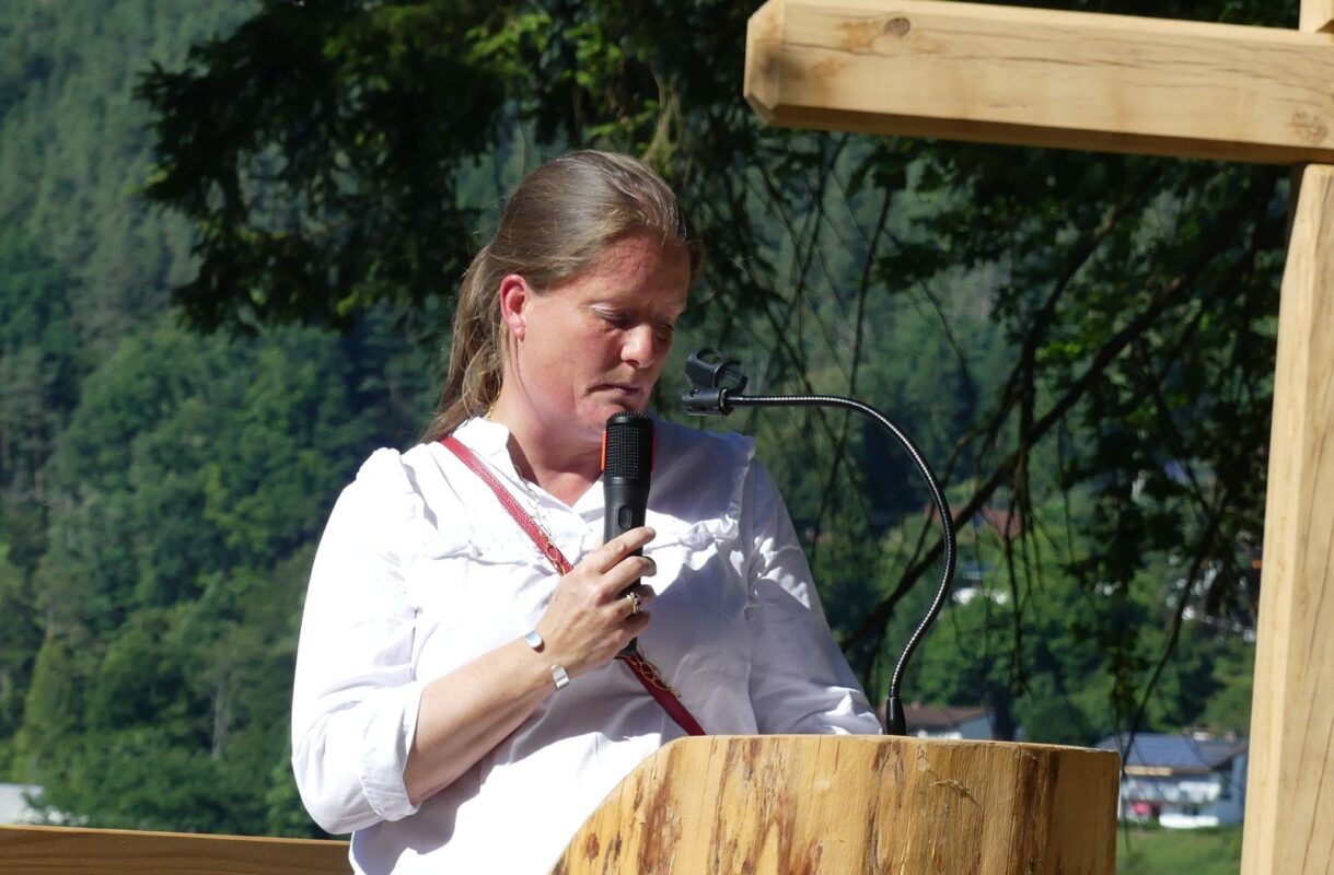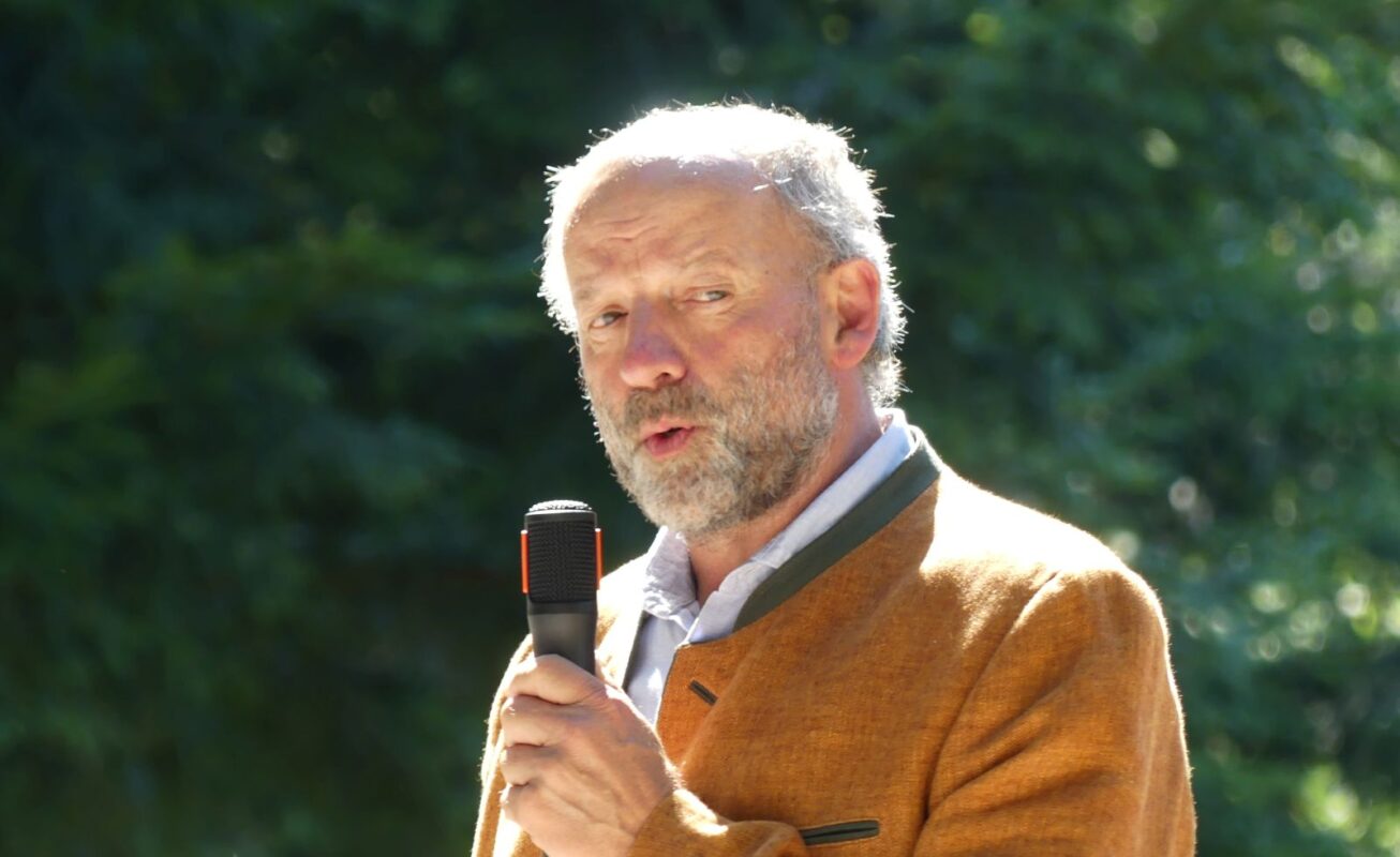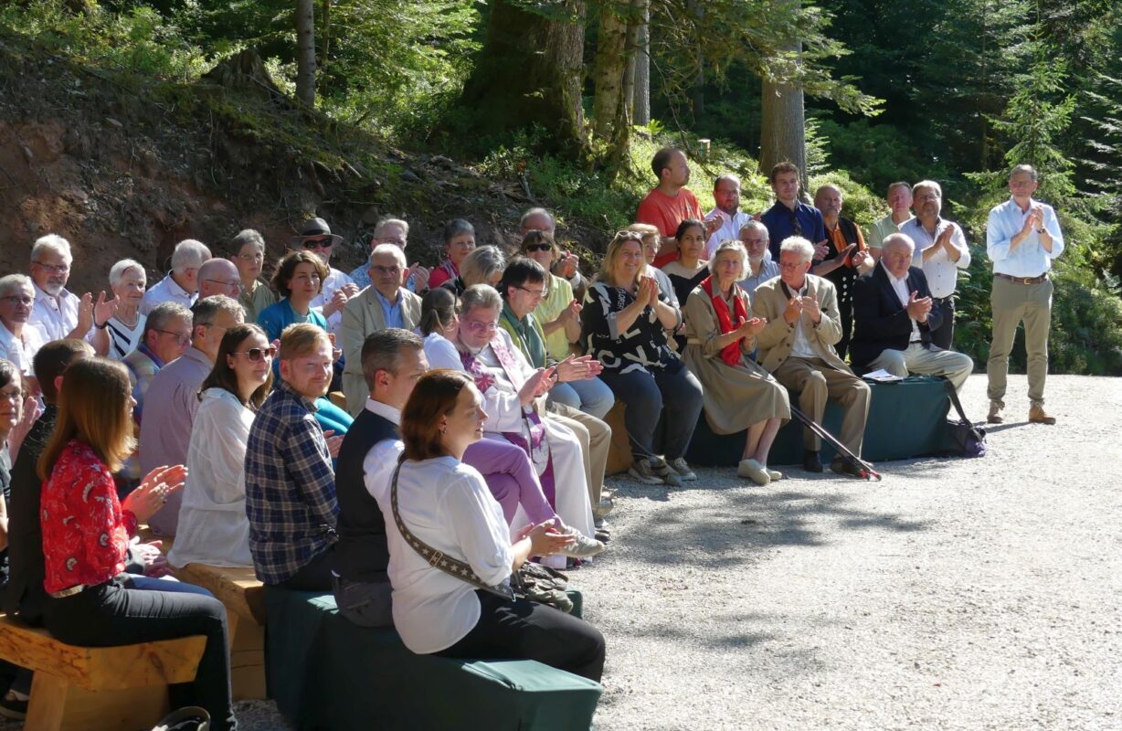 Auch das Rednerpult sei aus einem Fichtenstamm im angrenzenden Wald gefertigt. Wer daran stehe, könne das Alter zählen. Es seien deutlich mehr als 100 Jahre, „ein Zeichen von Langlebigkeit“, so Hilpert.