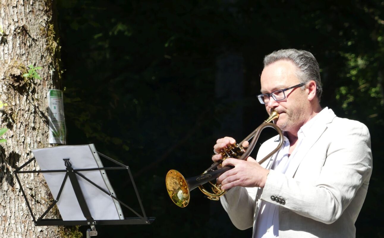 Nach dem Lied „Ich bete an die Macht der Liebe“, auf der Trompete vorgetragen von Rainer Benner, zitierte Kocholl Martin Luther: „Mitten im Leben sind wir vom Tod umfangen“. Der Tod gehöre untrennbar zum Leben. Die Falkensteiner Ruh werde „ein Ort der Trauer, aber auch der Hoffnung und christlichen Zuversicht“.