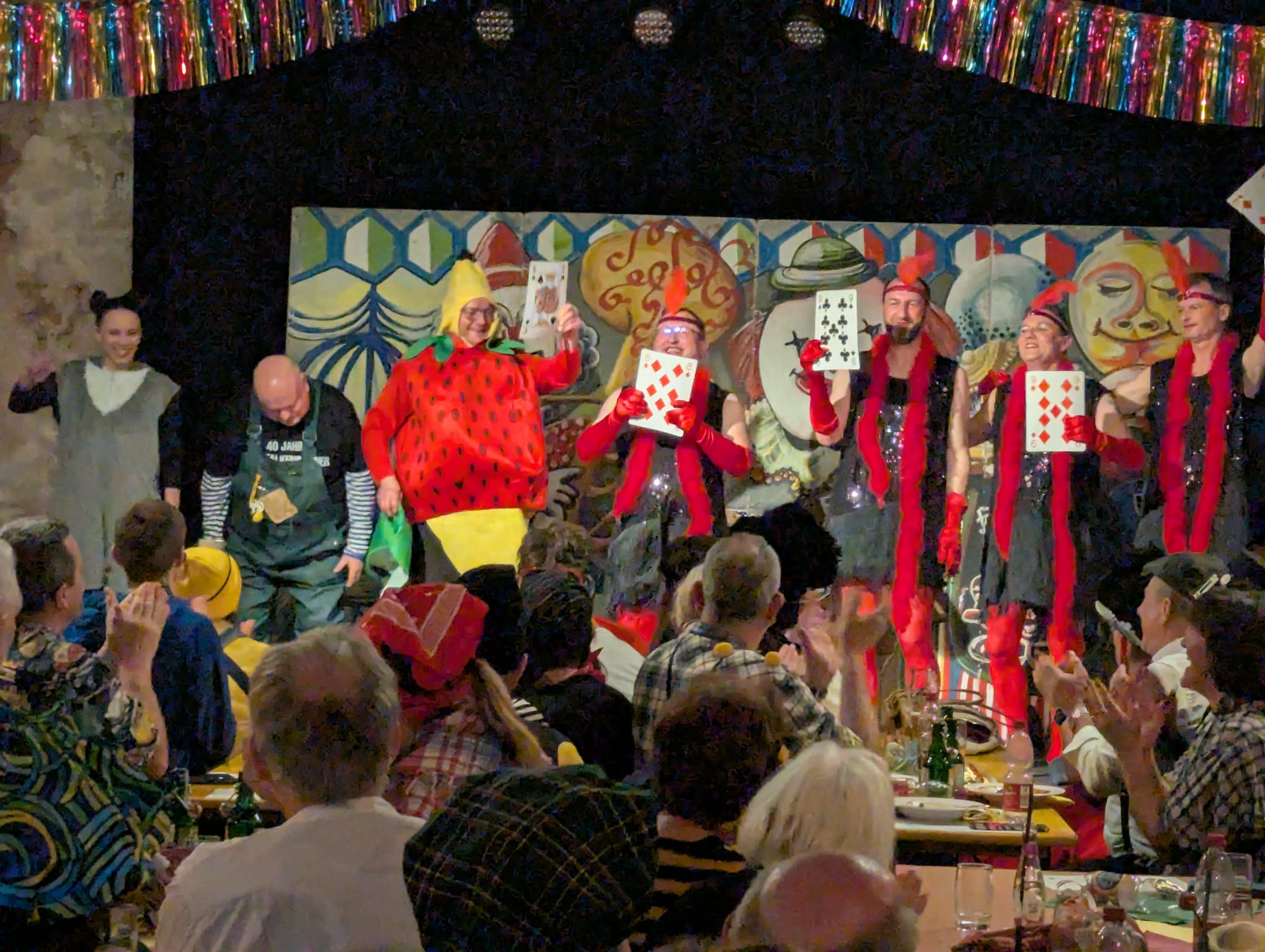 Das Programm startete mit dem Nachwuchs der Bürgervereinigung. In einer humorvollen Szene rund um ein Bewerbungsgespräch mit KI und die Tücken der political correctness im Restaurant trafen sie den Nerv des Publikums. Auf der Bühne standen Sophie und Kai Ertel, Emely und Ben Müller, Laura und Lukas Mink sowie Julia Bianco, begleitet von Sonja Mink.